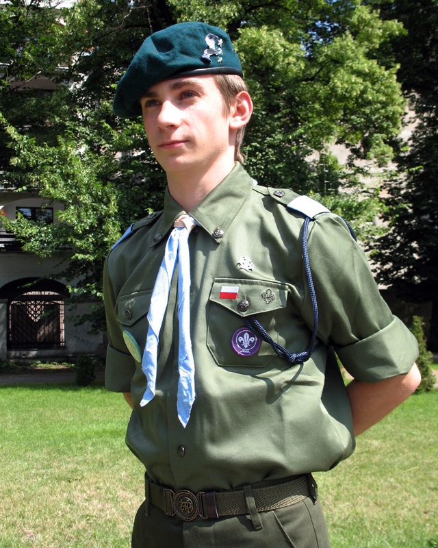 Для девочки мы выберем серую рубашку, а для мальчика зеленую рубашку – хаки. На момент покупки на форменной рубашке ЖП на левом кармане пришит польский флаг и логотип ЖП - характерная лилия.