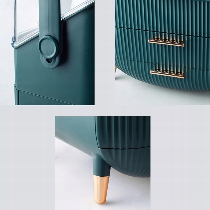 В органайзере имеется прозрачная крышка, благодаря которой видно, что находится внутри. Органайзер выполнен из акрила модного цвета, а элементы золотого цвета придают изделию эксклюзивный вид.