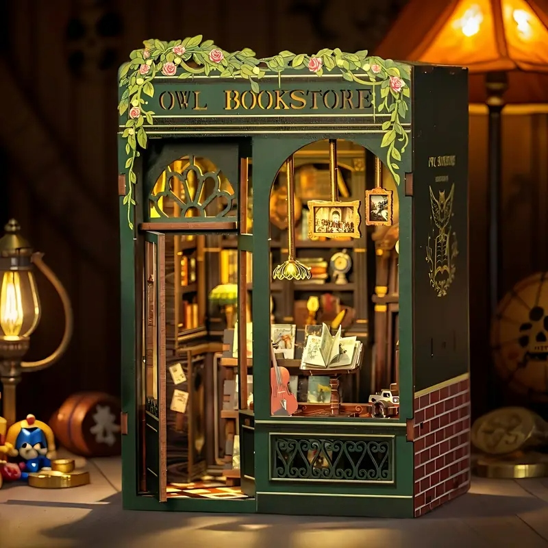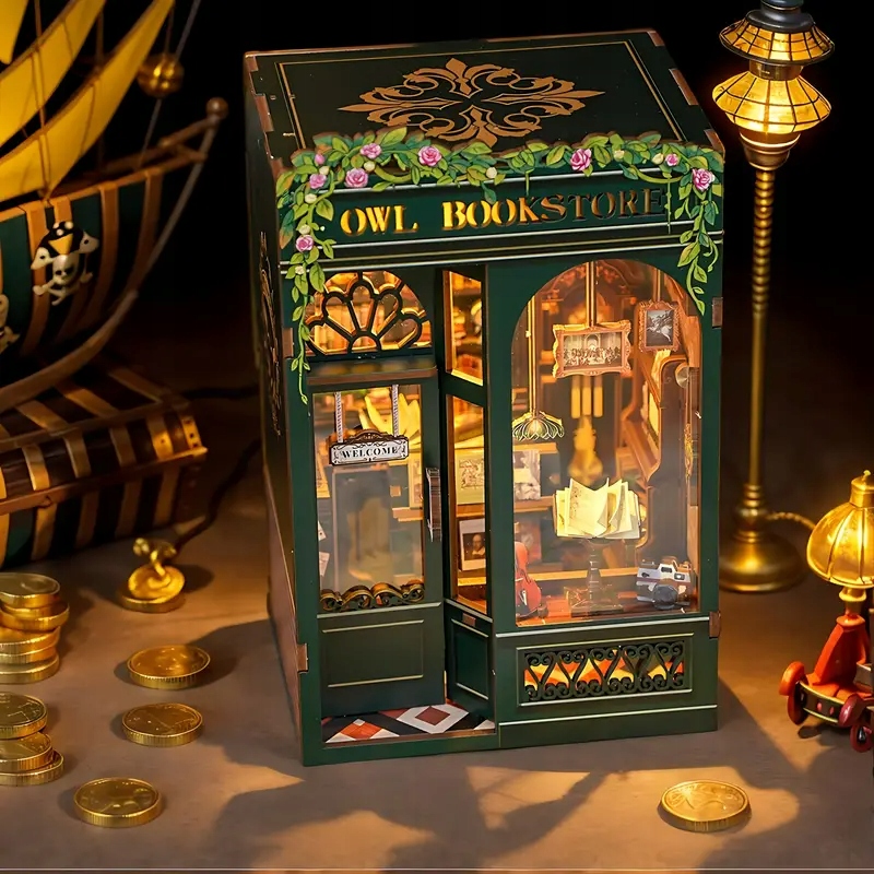 Book nook miniaturowy domek DIY TAJEMNICZA KSIĘGARNIA SOWY