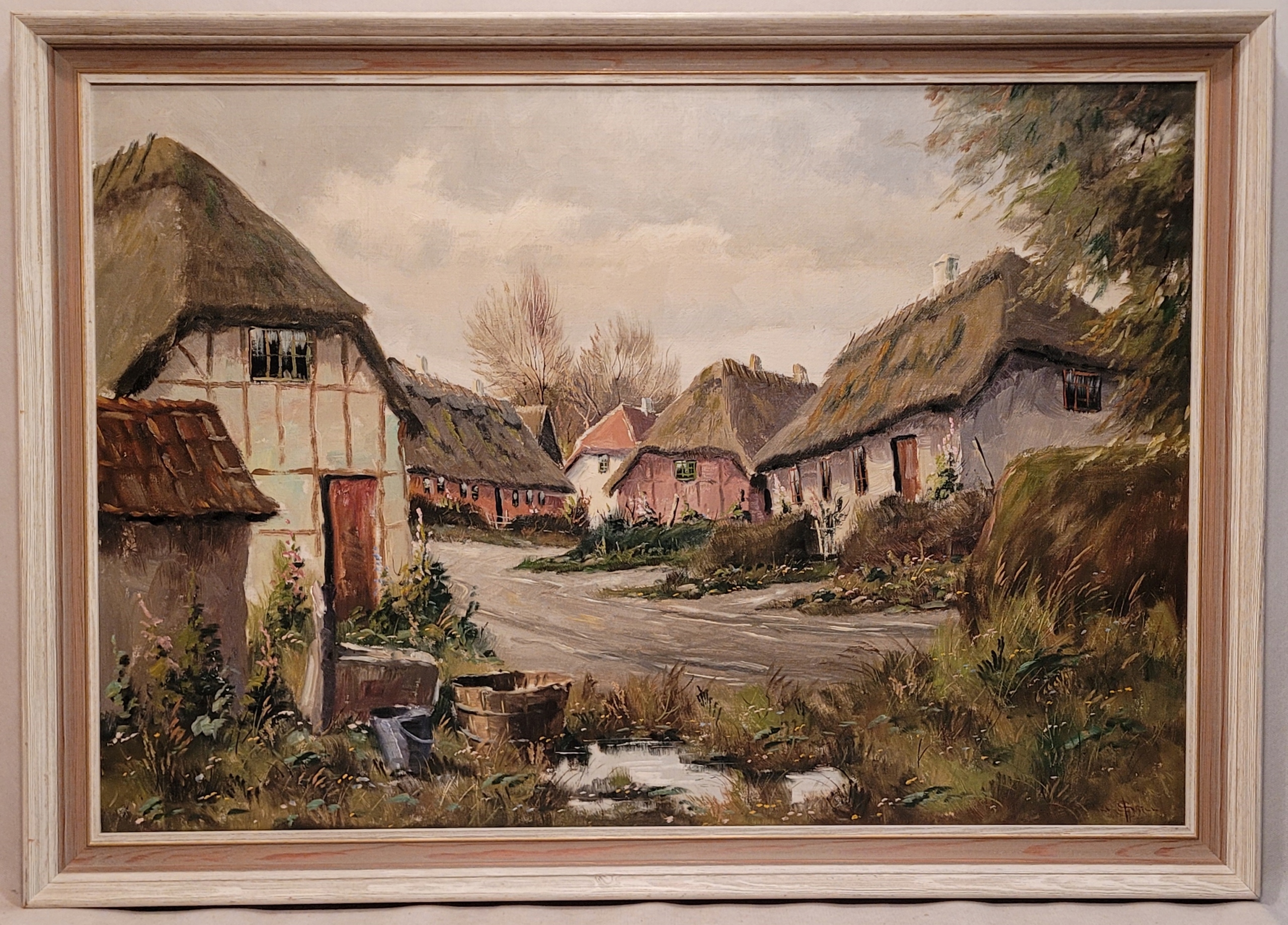 Тема продаж - красивая старая нефтяная картина "Сельские пейзажи".