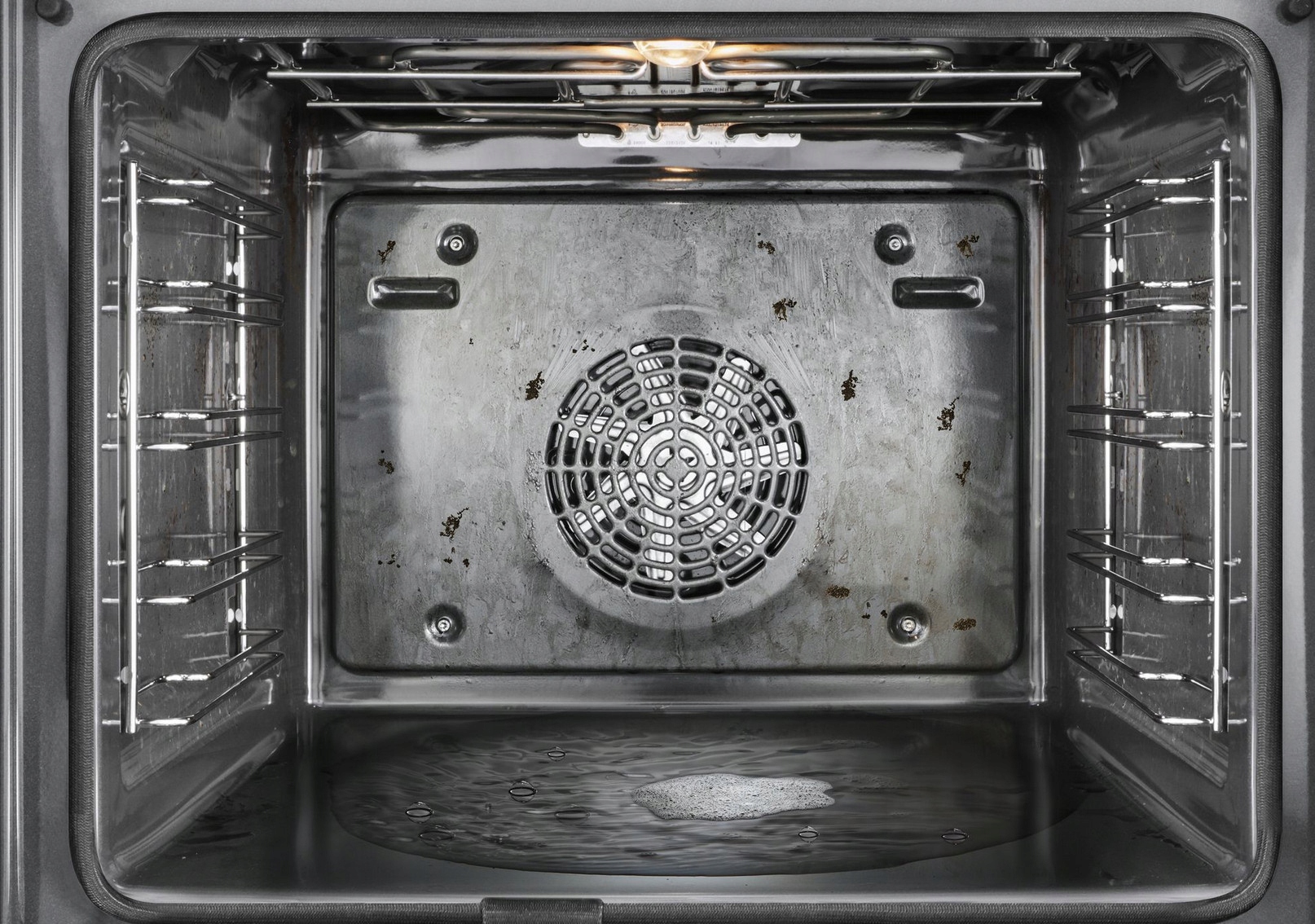 Помощник по очистке Просто положите около 400 мл воды и каплю моющего средства для мытья посуды на дне духовки, затем установите соответствующую функцию нагрева, температуру и время. Этот экологически чистый метод очистки смягчает остатки выпечки. Просто протрите их тканью, и весь процесс очистки быстрый и несложный.