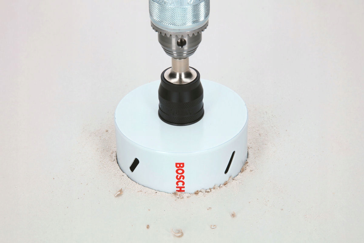 Для прикрепления лапы лапы, прогрессируемого для дерева и металлического Bosch, ручки Bosch, используйте адаптер Bosch с изменением питания со специальной пилотной тренировкой. Изменение питания позволяет быстро, простой и без инструментов установки широкого спектра отверстий, предлагаемых Bosch, поэтому вам нужно иметь только один адаптер изменения мощности, чтобы использовать все законы Bosch PI.