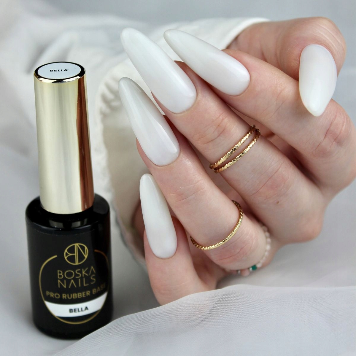 Каучуковая основа Bella белого цвета, идеальна для гибридного маникюра и знаменитого бэби-бумера.