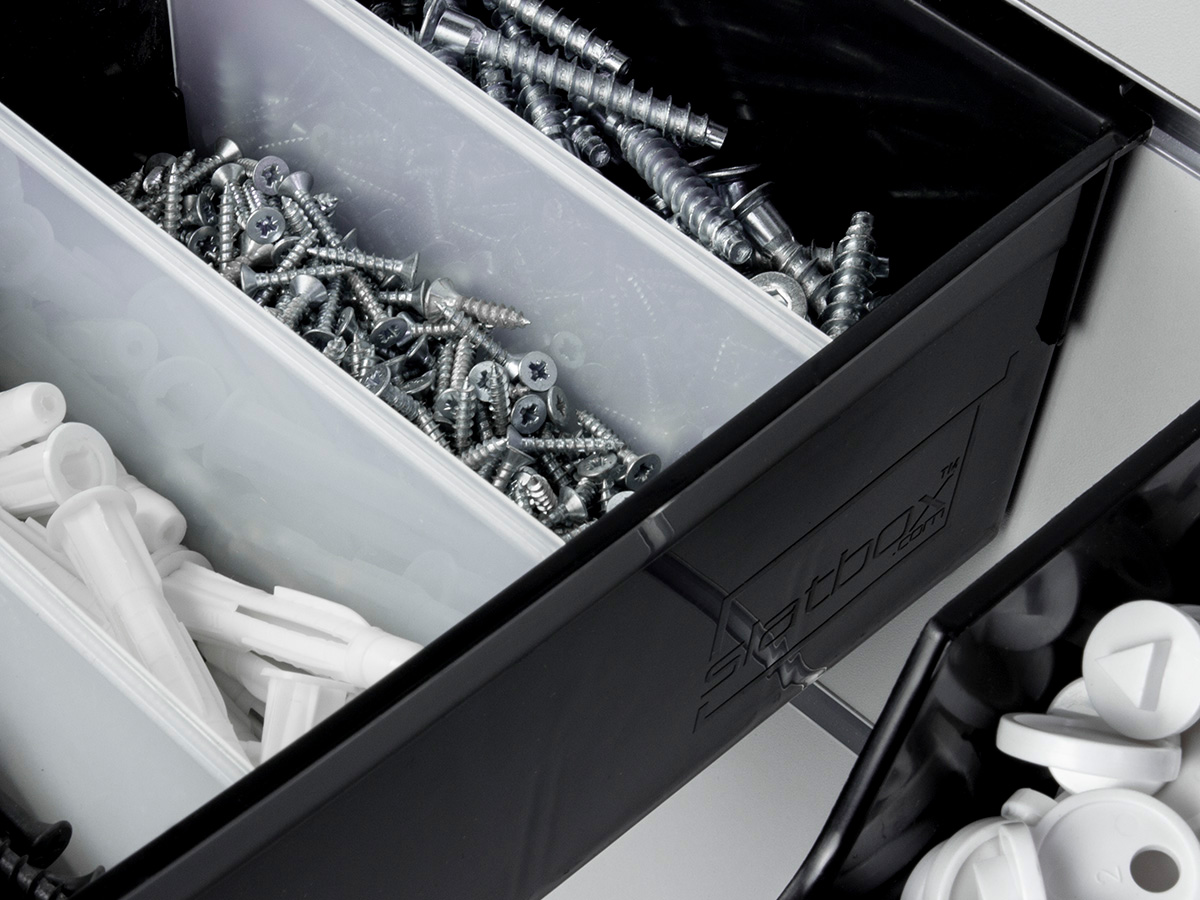Контейнер BOX, глубокий для системы Spacewall, шириной 14 см, глубиной 22 см и высотой 8 см. Изготовлен из пластика - полипропилена, черного цвета.