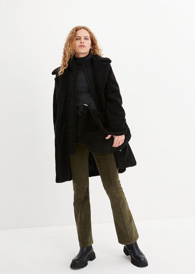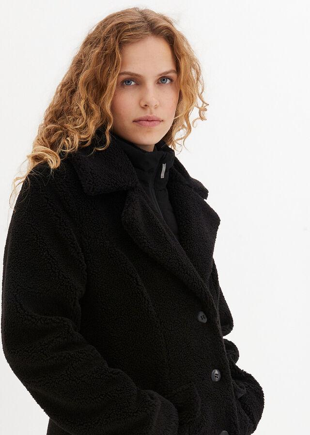 BPC CZARNY PŁASZCZ Z PIKOWANĄ WSTAWKĄ