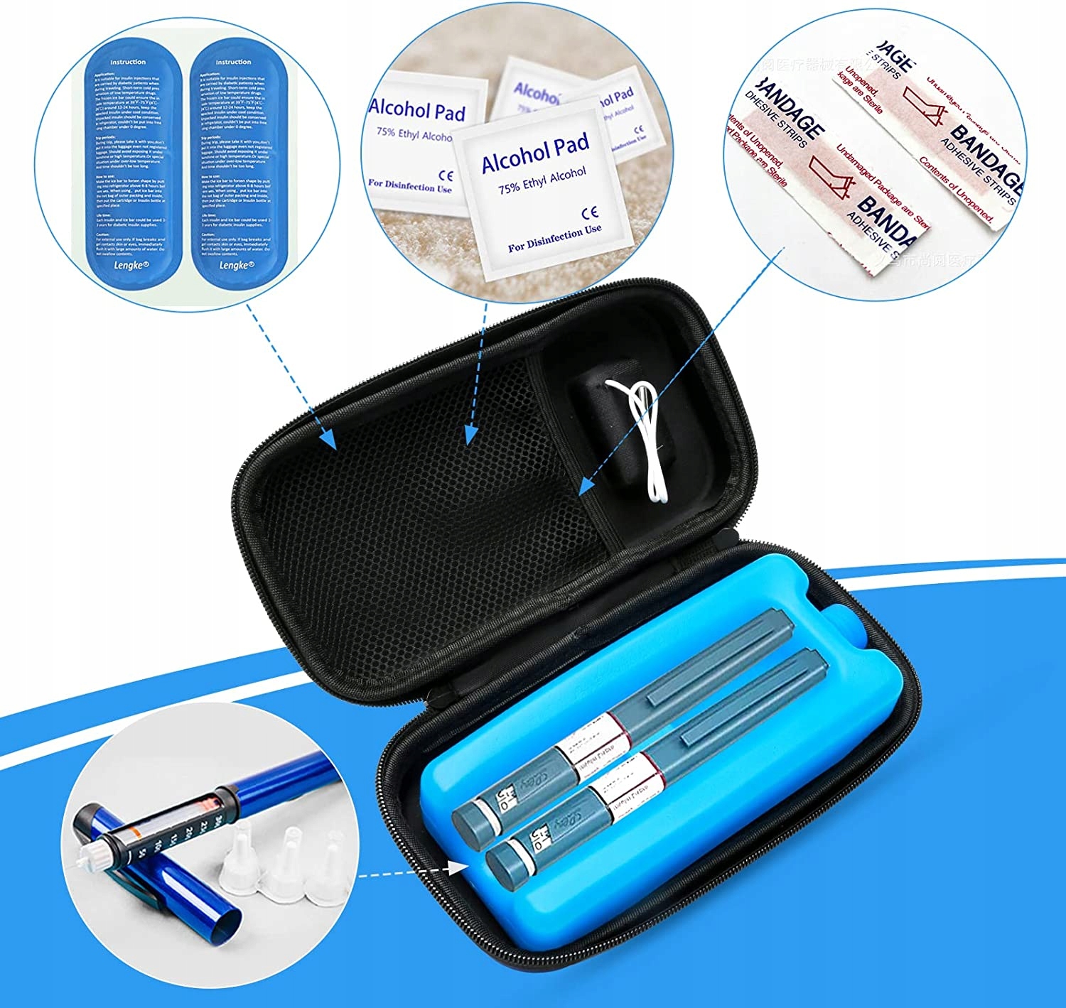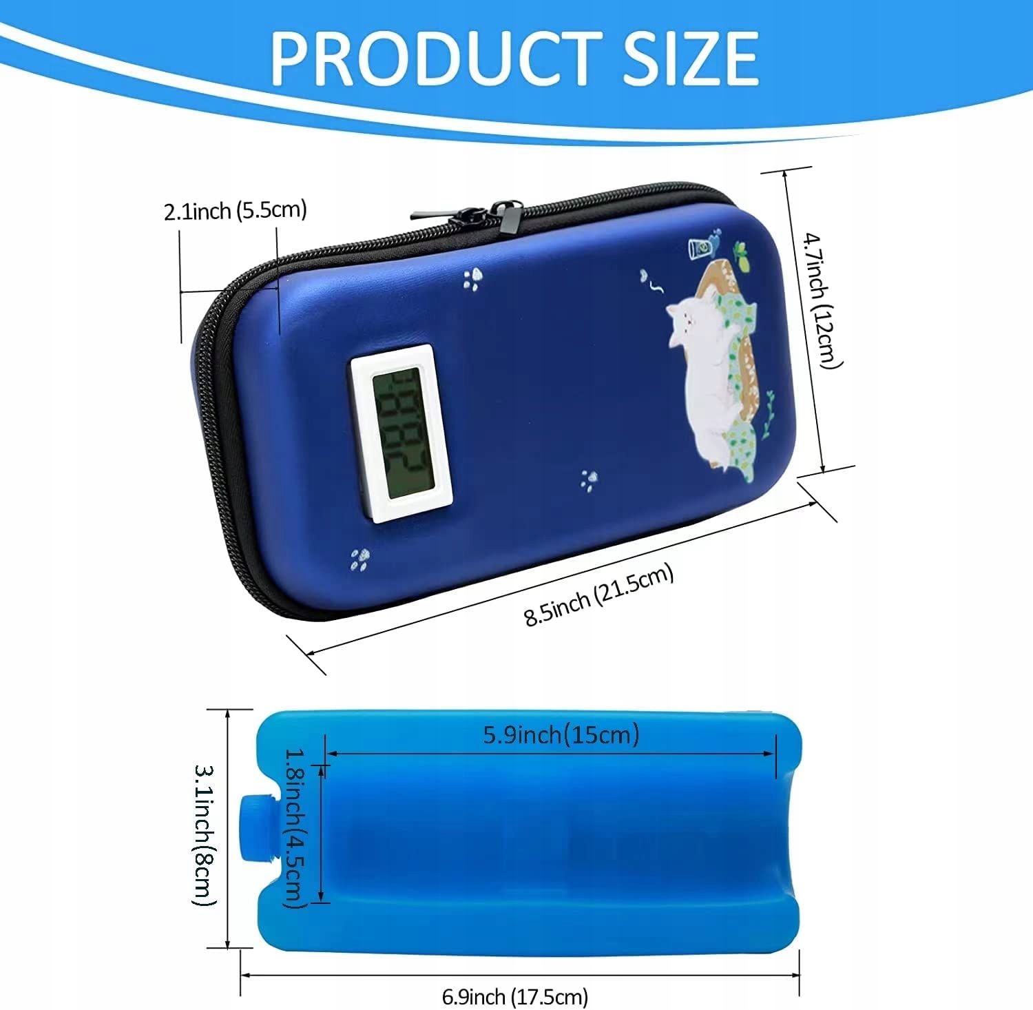 Отображение температуры внешнего слоя.】- Это специальная конструкция для визуализации температуры на внешнем слое инсулиновой коробки без открытия реального временной контроль температуры внутри коробки, чтобы избежать случайной порчи ценных лекарств при высокой температуре. В комплект входит 1 многоразовый контейнер для геля, которого хватает на 6-8 месяцев. 【Внешний дизайн】 - оптимистичный дизайн синего цвета и кота в сопровождении, использование различных прочных полиэфирных конструкций из различных материалов, коробка длиной всего 8,5 дюйма, шириной 2,1 дюйма, двойная застежка-молния, водонепроницаемая и теплоизоляционная одновременно. 【Материал】-Этот дорожный футляр-холодильник для инсулина покрыт красивой мягкой подкладкой и стеганым многослойным материалом, твердая внешняя коробка изготовлена из нескольких слоев высококачественной кожи, которая легко выдерживает столкновения и тиснения внутри сумки, что может защитить вашу инсулиновую ручку для до 10 часов без электричества. 【Помещение для хранения】-двухслойная сумка позволяет безопасно хранить инсулиновые ручки, тест-полоски, лекарства, флаконы и пакеты со льдом. Маленький и удобный, идеально подходит для коротких поездок.