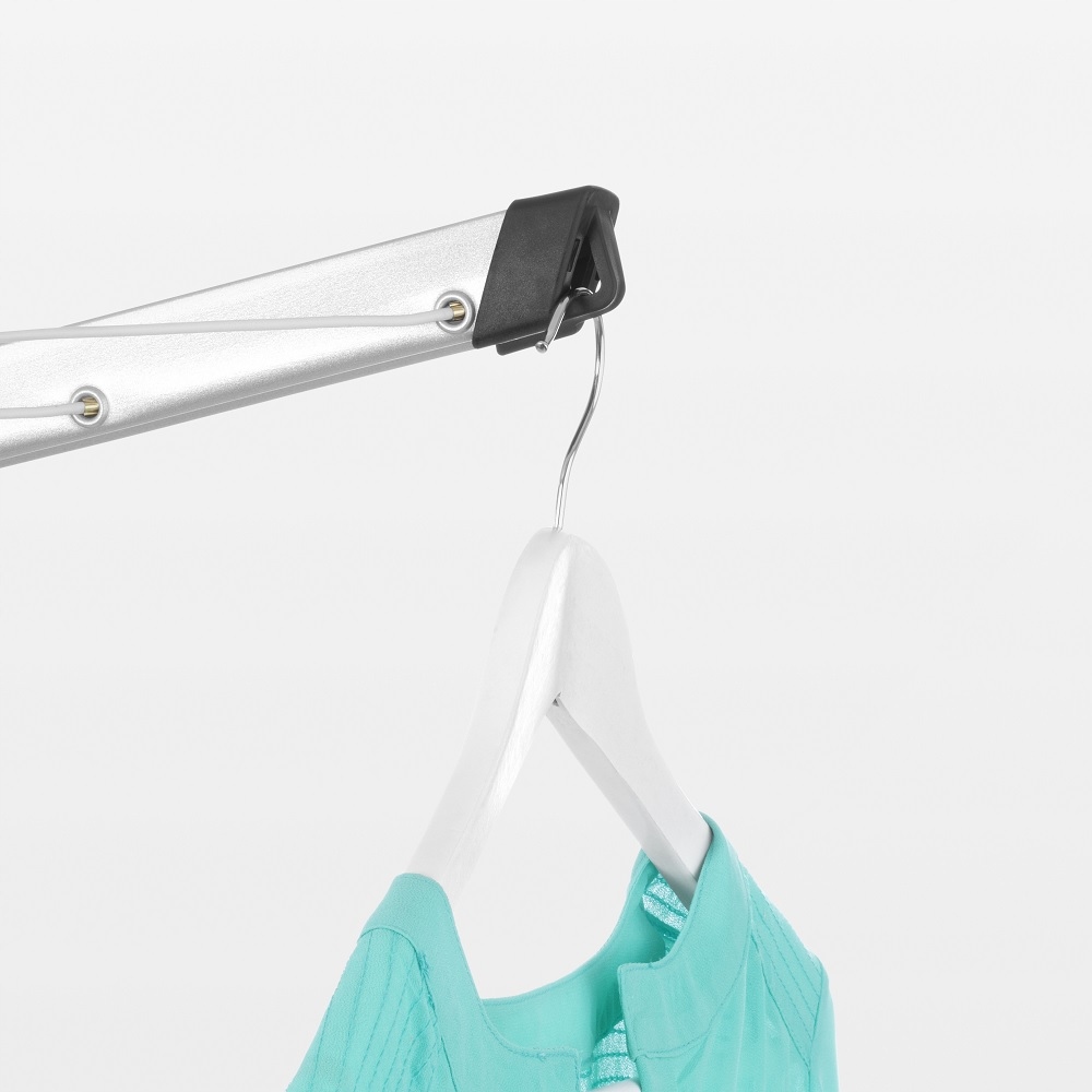 Специально обработанные кронштейны позволяют сушить одежду на вешалках. Их максимальный рост — 177 см.