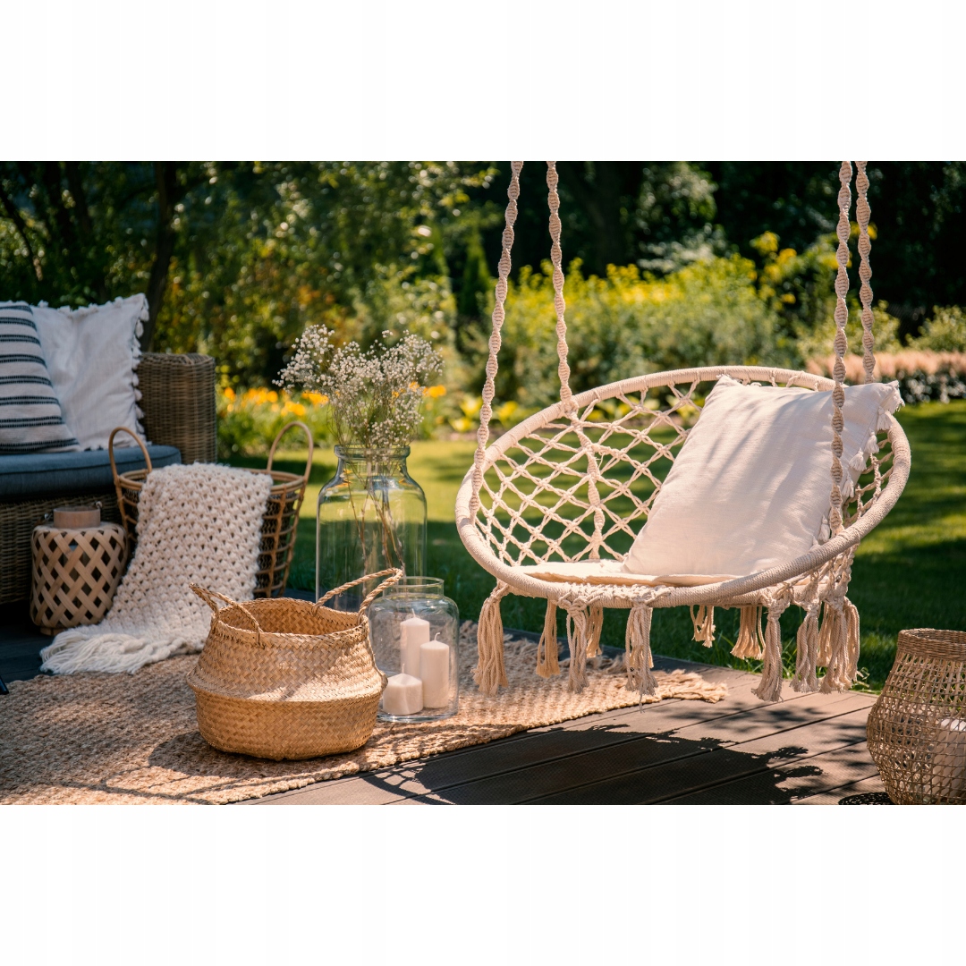Бразильский стул качели, висящий с подушкой, бежевый в саду h1> Бохок, висящий в саду h2>