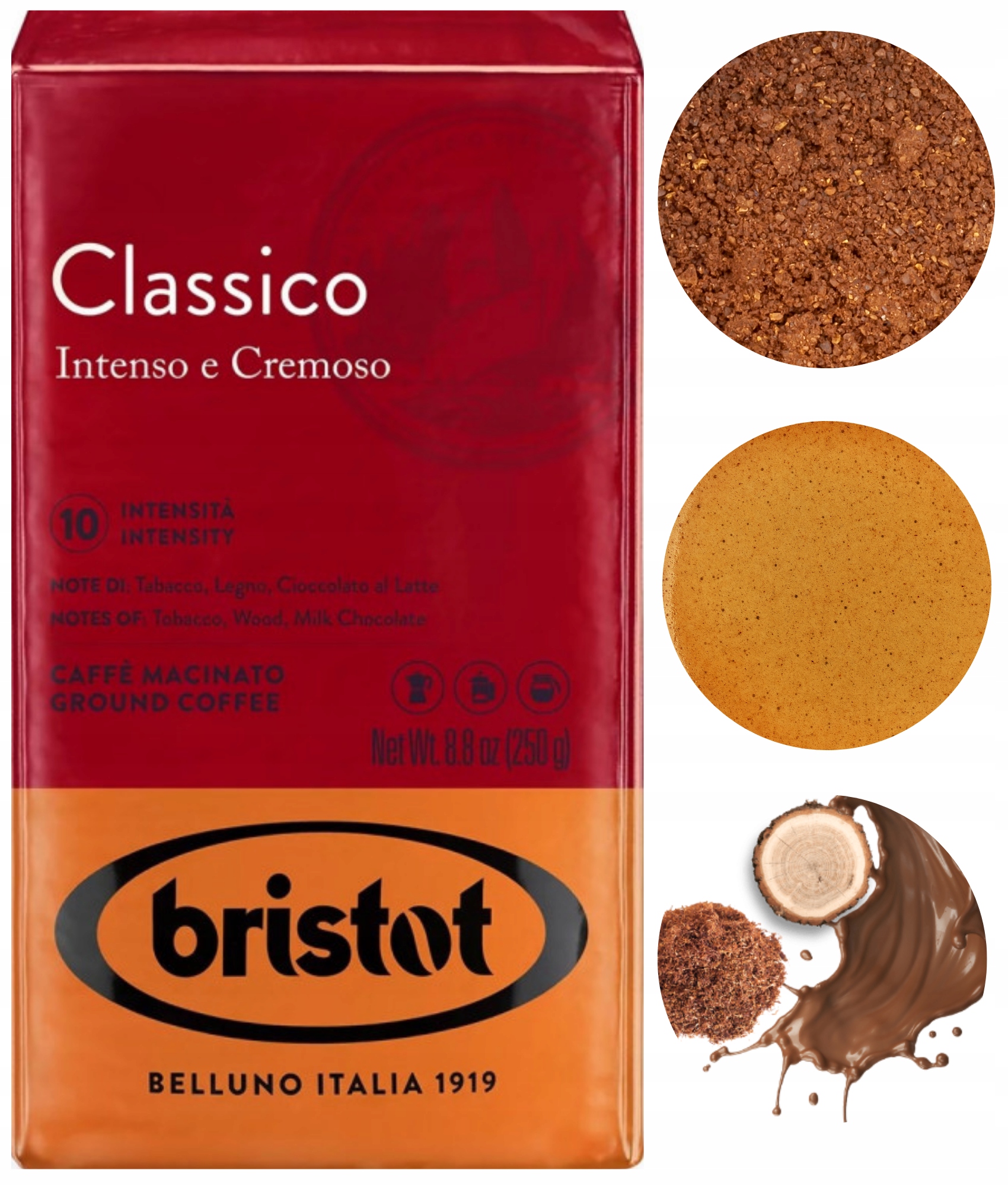 Bristot Classico -это отличная смесь высококачественных бобов арабики и робуст, созданная для любителей традиционного итальянского кофе. Он характеризуется интенсивным ароматом, полным тела и выразительного вкуса с нотами шоколада и жареных орехов.