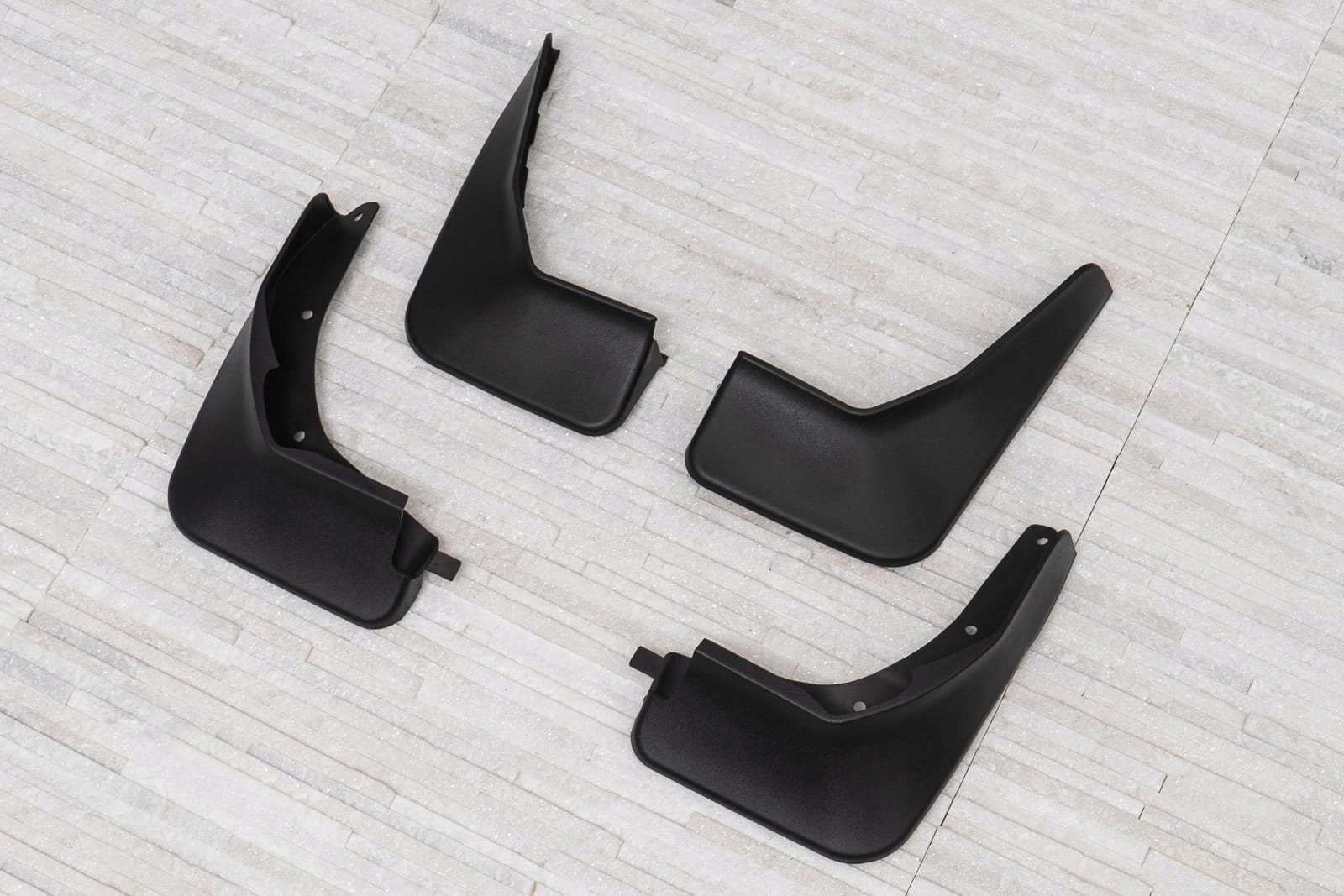 В комплект входит комплект из четырех брызговиков и элементов крепления. Изделие устанавливается на заводские места, без дополнительных доработок. Мы рекомендуем установку в профессиональной мастерской.