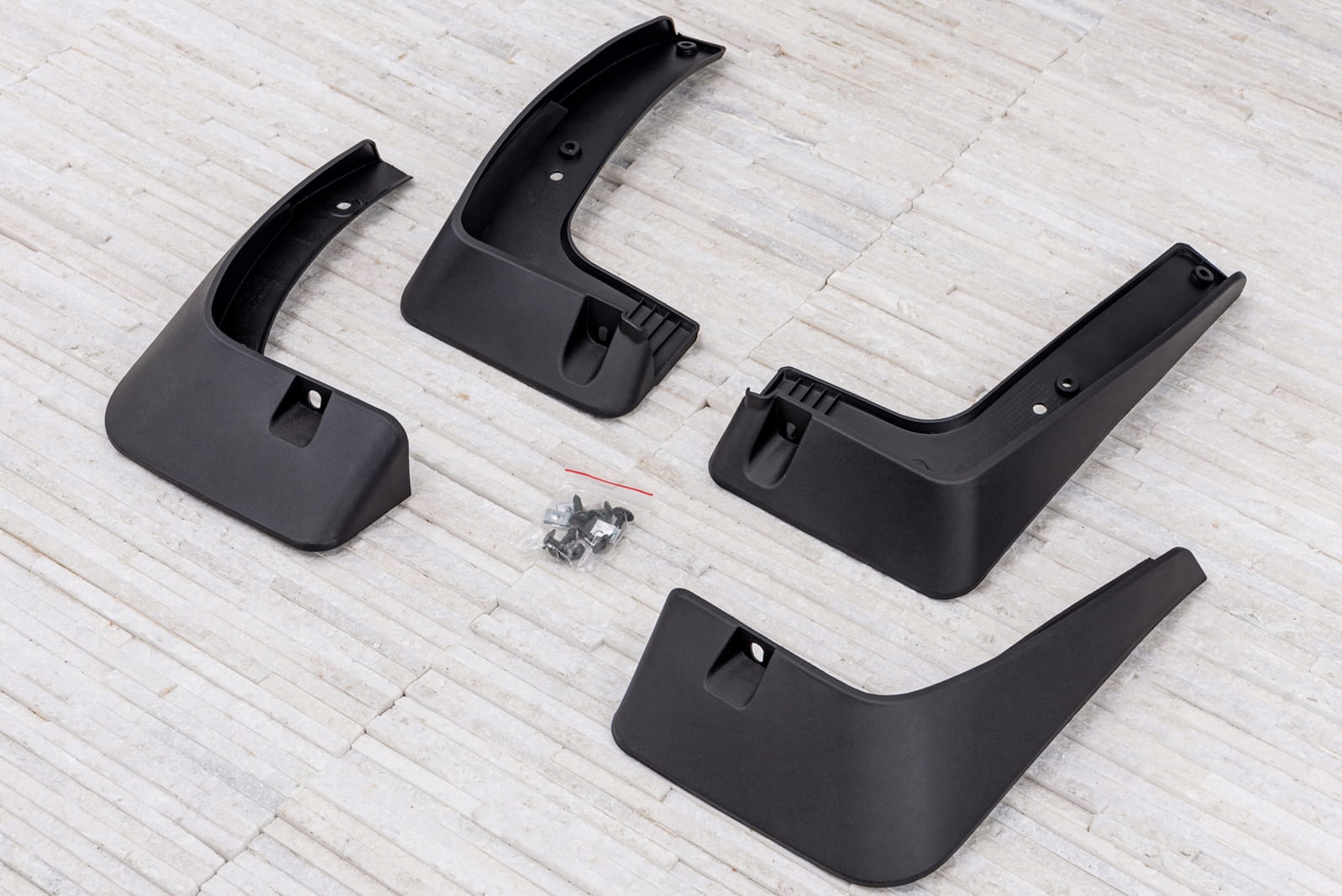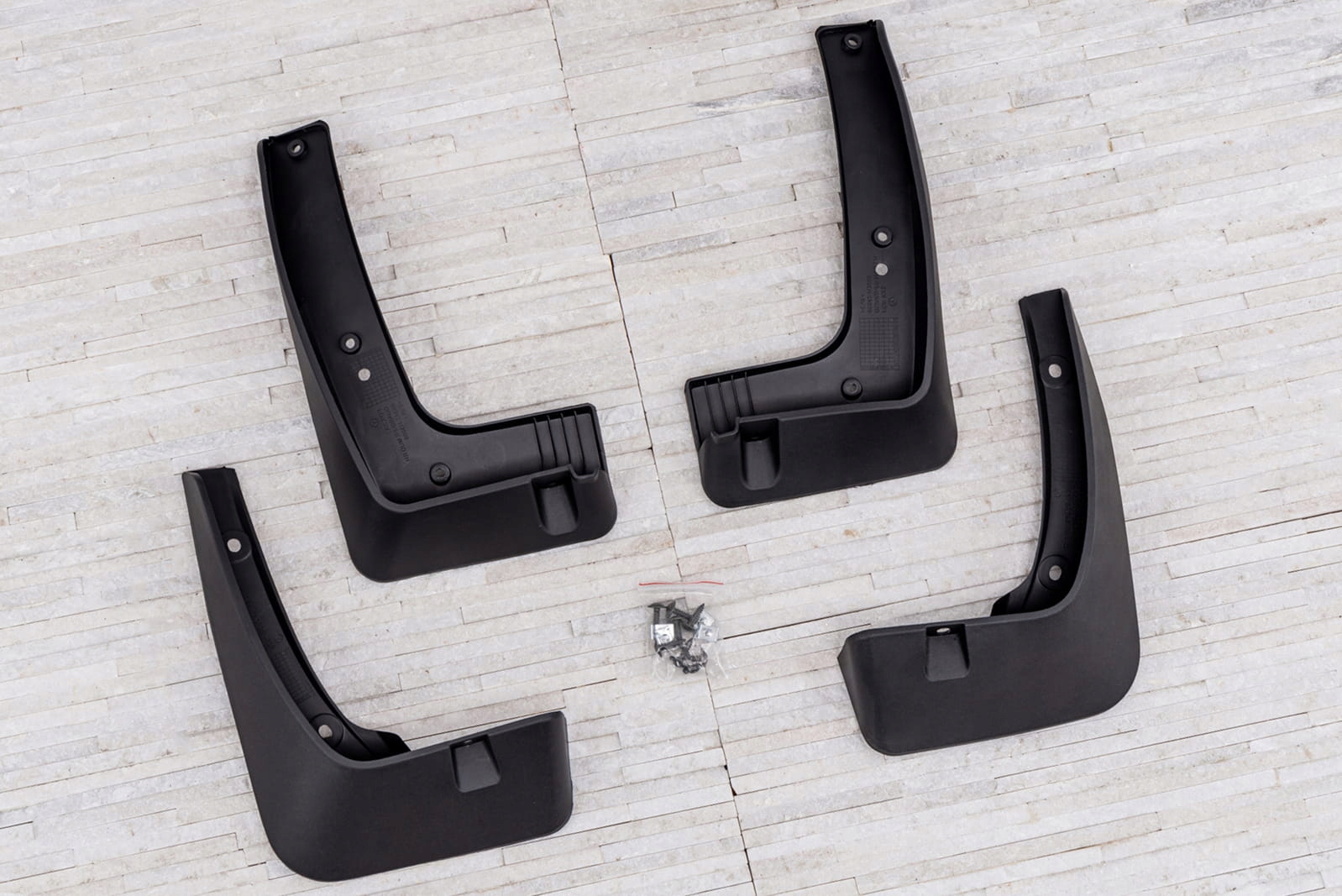 В комплект входит комплект из четырех брызговиков и элементов крепления. Изделие устанавливается на заводские места, без дополнительных доработок. Мы рекомендуем установку в профессиональной мастерской.