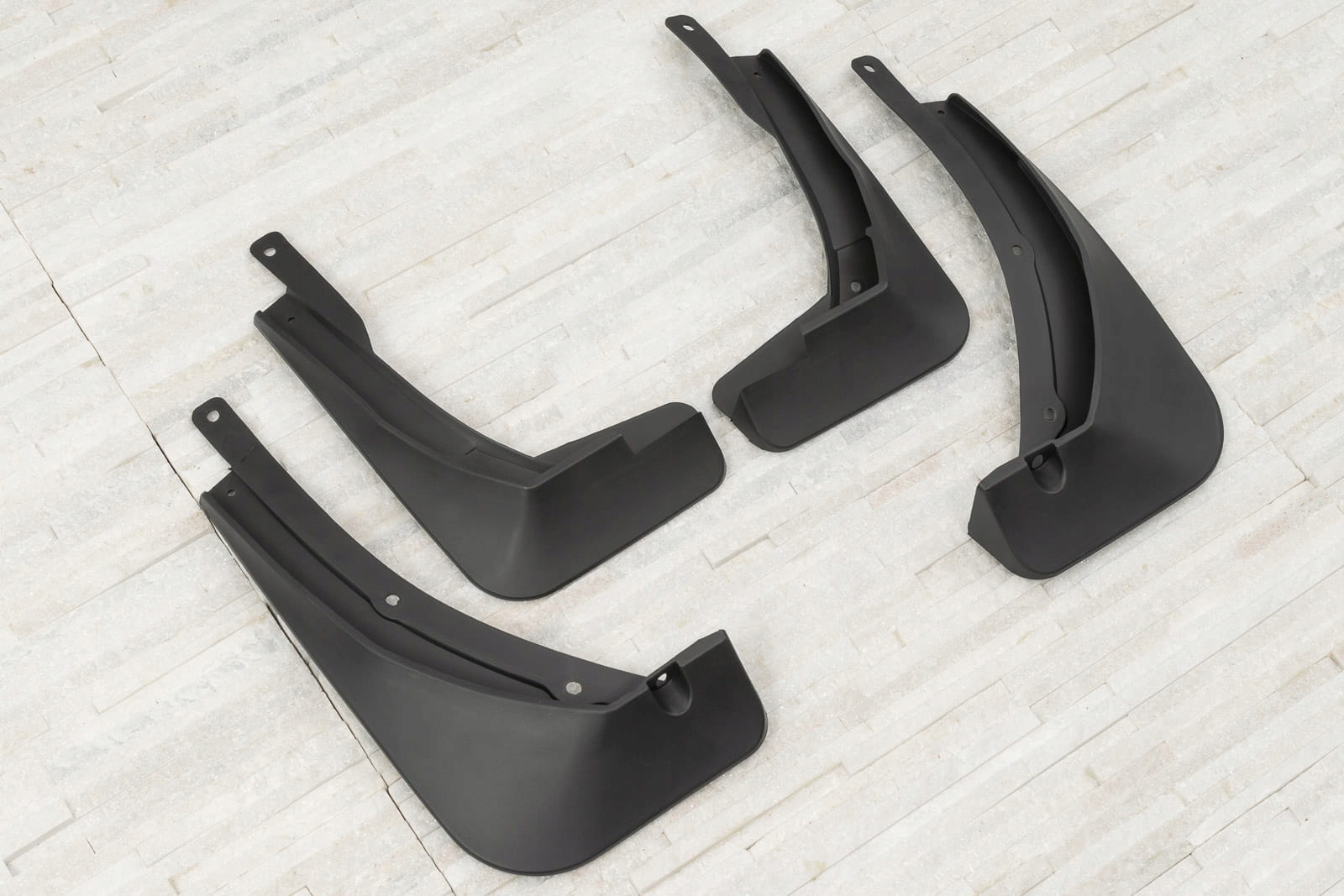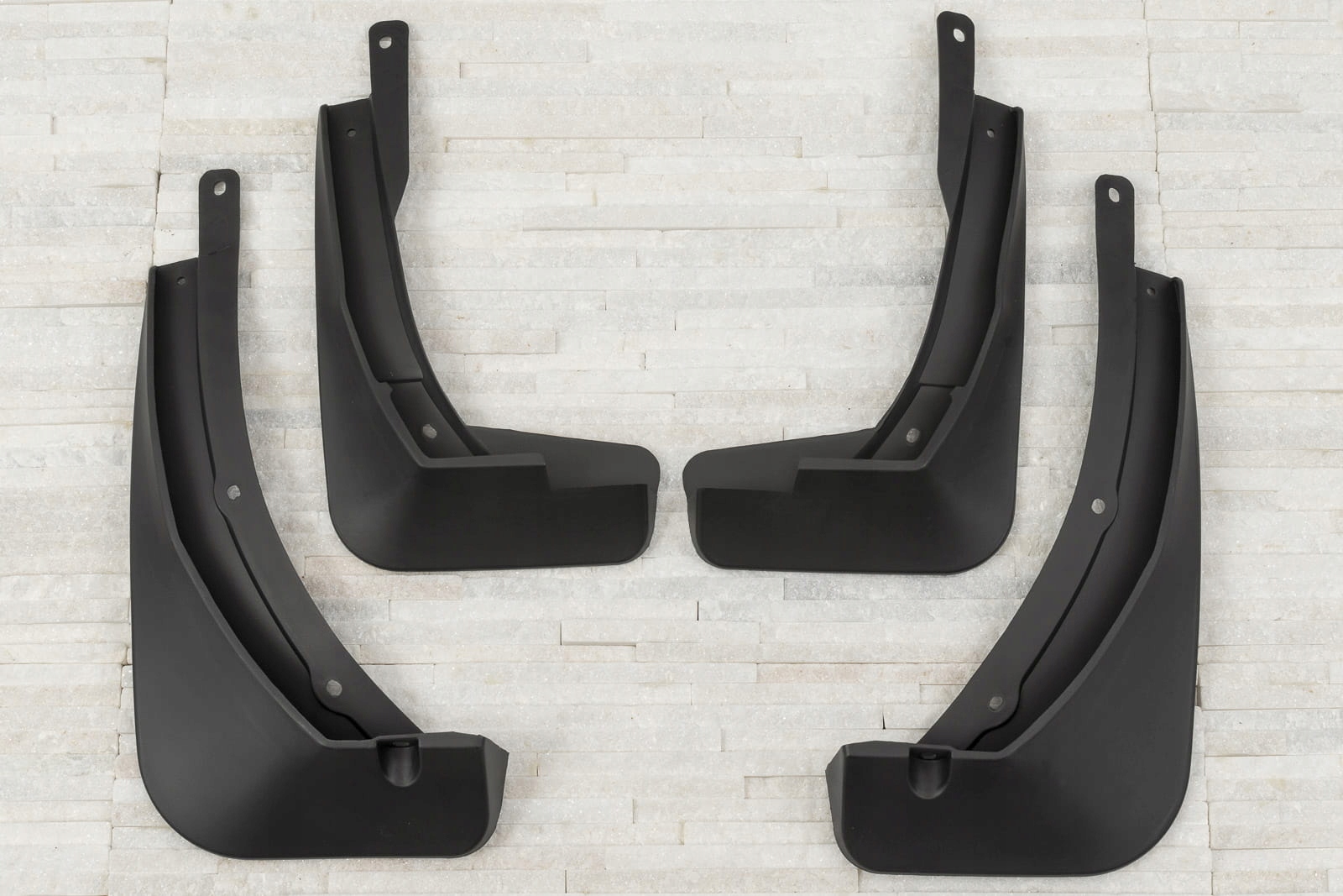 В комплект входит комплект из четырех брызговиков и элементов крепления. Изделие устанавливается на заводские места, без дополнительных доработок. Мы рекомендуем установку в профессиональной мастерской.