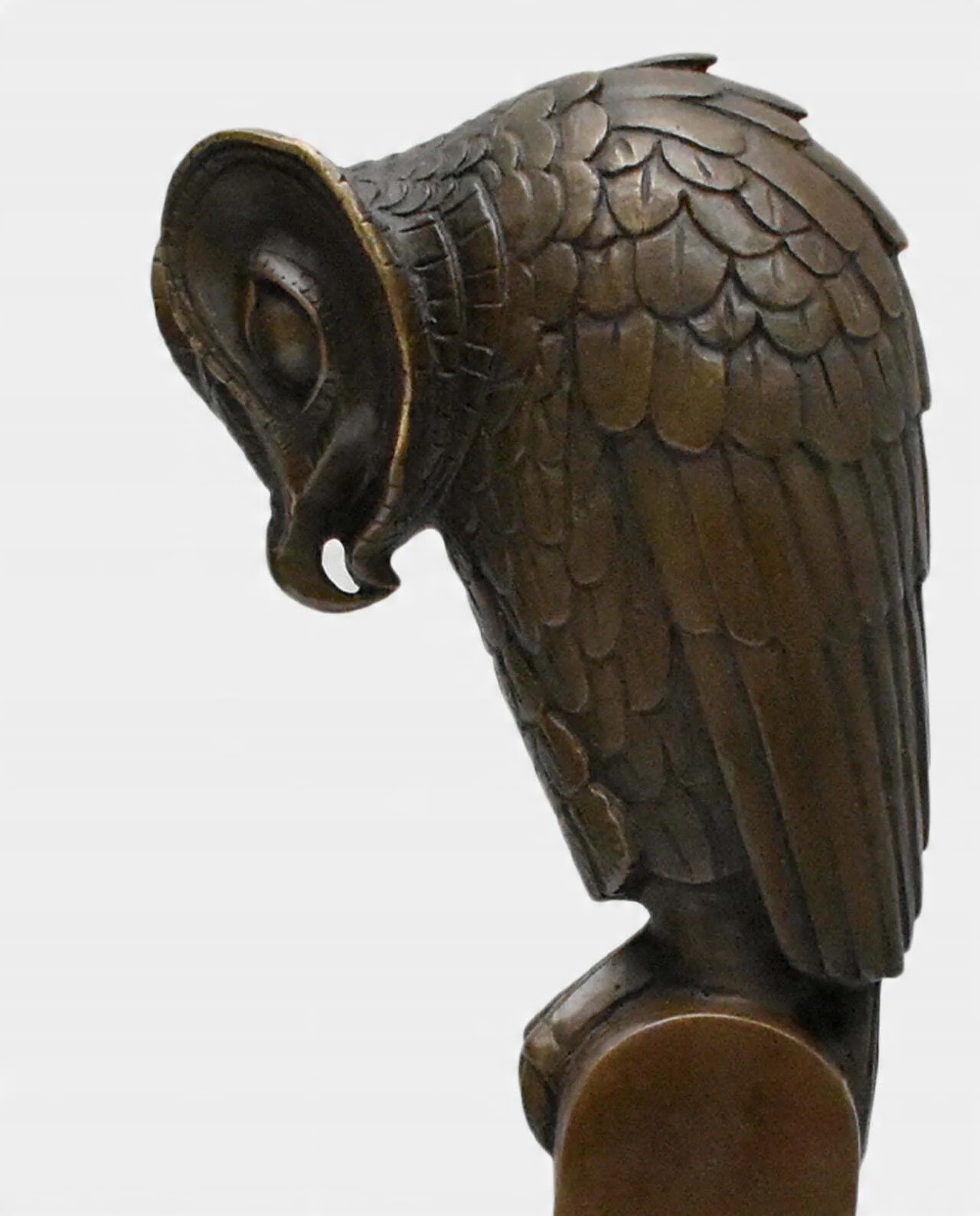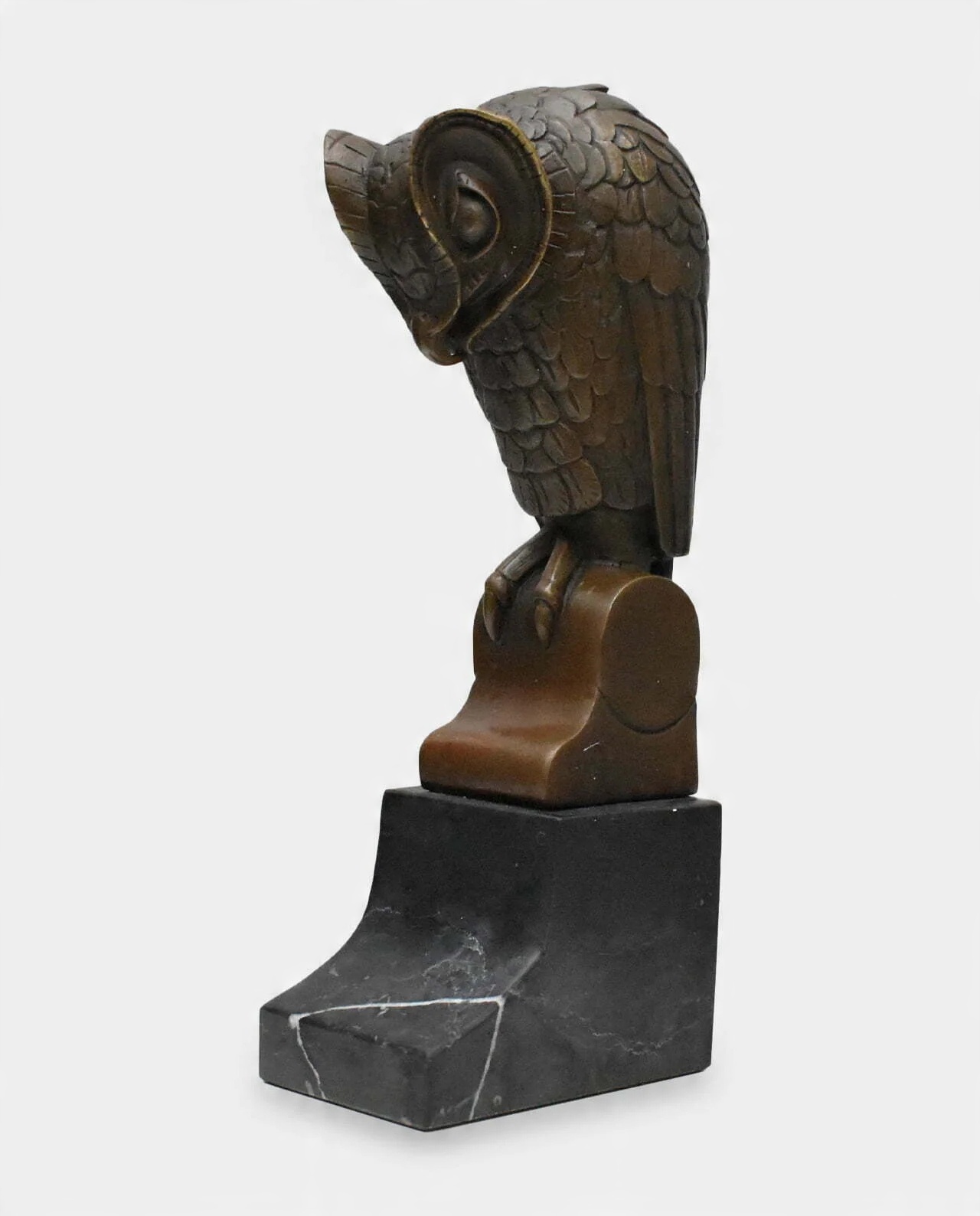 Бронзовая скульптура совы в стиле ар-деко. Красивая, подписанная скульптура, выполненная из эксклюзивного материала очень точно, с вниманием к мельчайшим деталям. Установлен на черной мраморной основе. Фигурка производит большое эстетическое впечатление и имеет вневременной стиль. Подходит ко многим интерьерам.