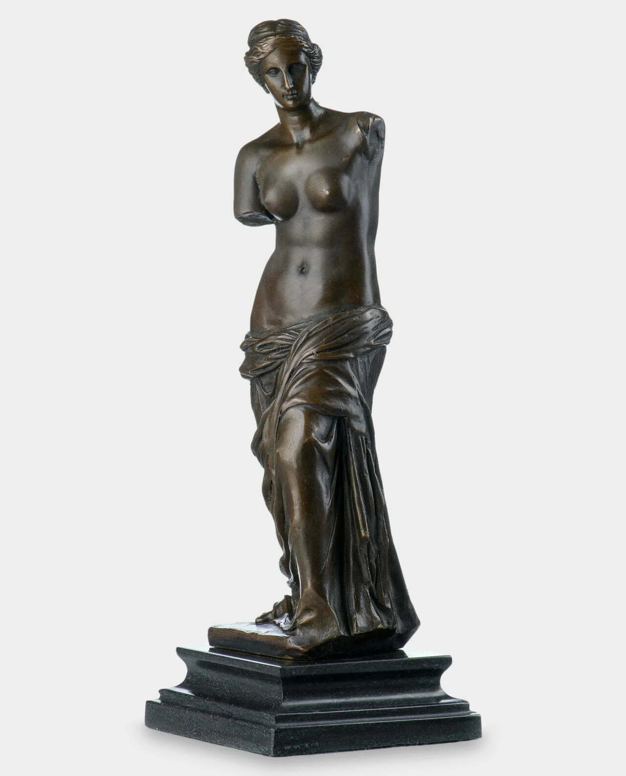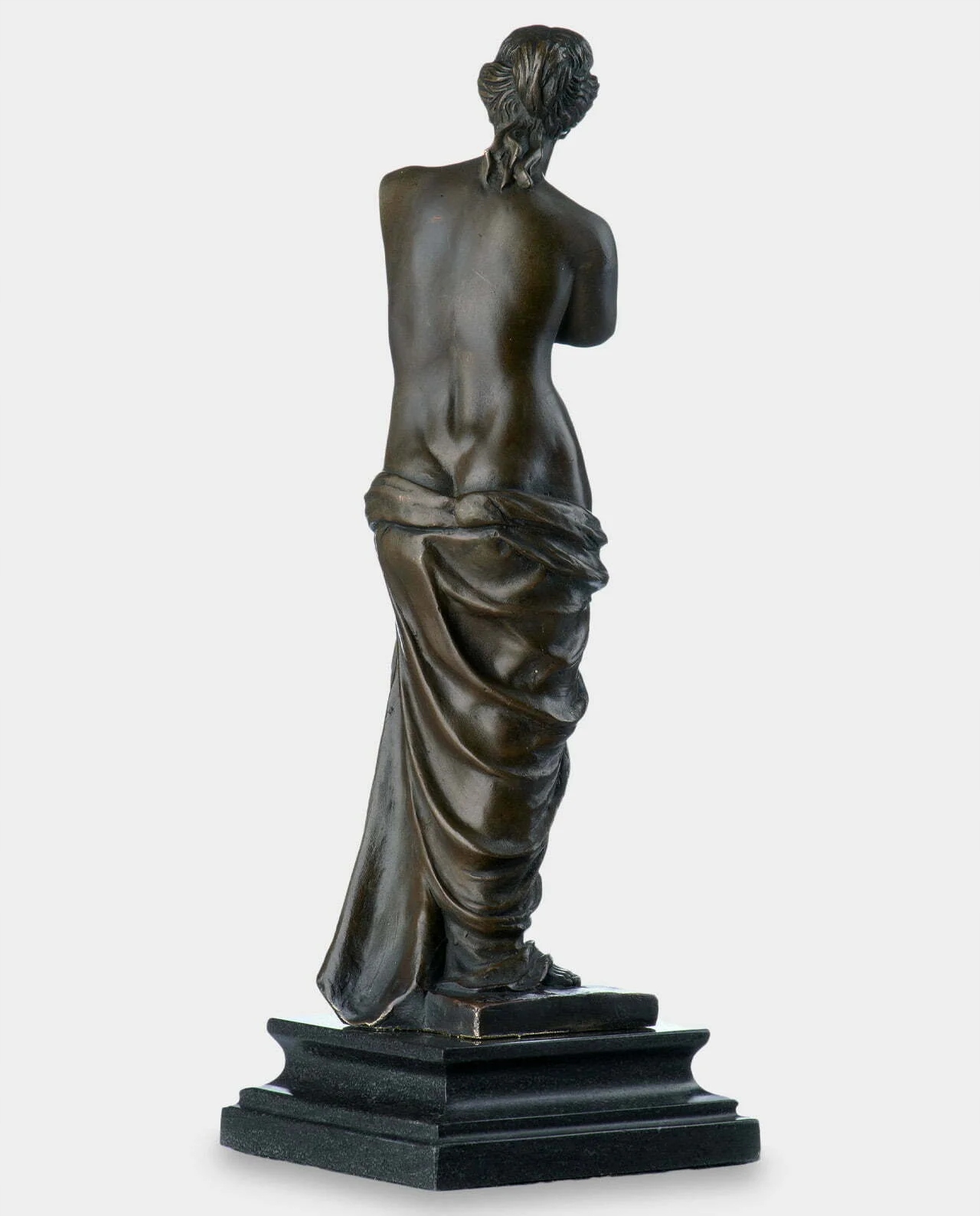 Красивая скульптура, изображающая мифологическую богиню Венеру, вдохновленная древней статуей Венеры Милосской. Красивая, подписанная фигурка, изготовлена из эксклюзивного материала - бронзы, очень точно, с вниманием к мельчайшим деталям. Установлен на черном мраморном основании. Фигурка производит большое эстетическое впечатление и имеет вневременной стиль. Подходит ко многим интерьерам.