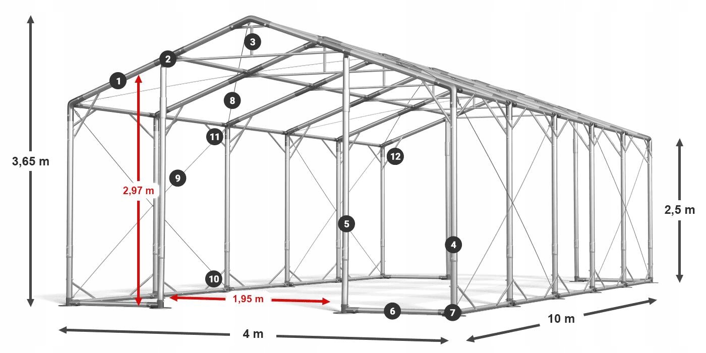 4m x 10m x 2,5/3,65 м