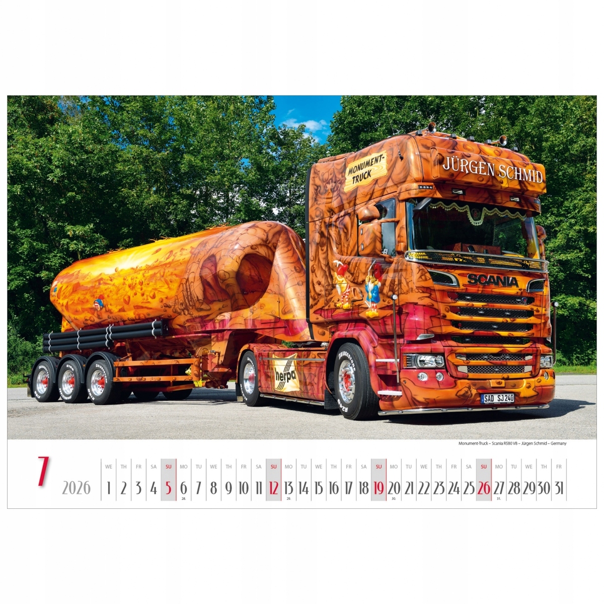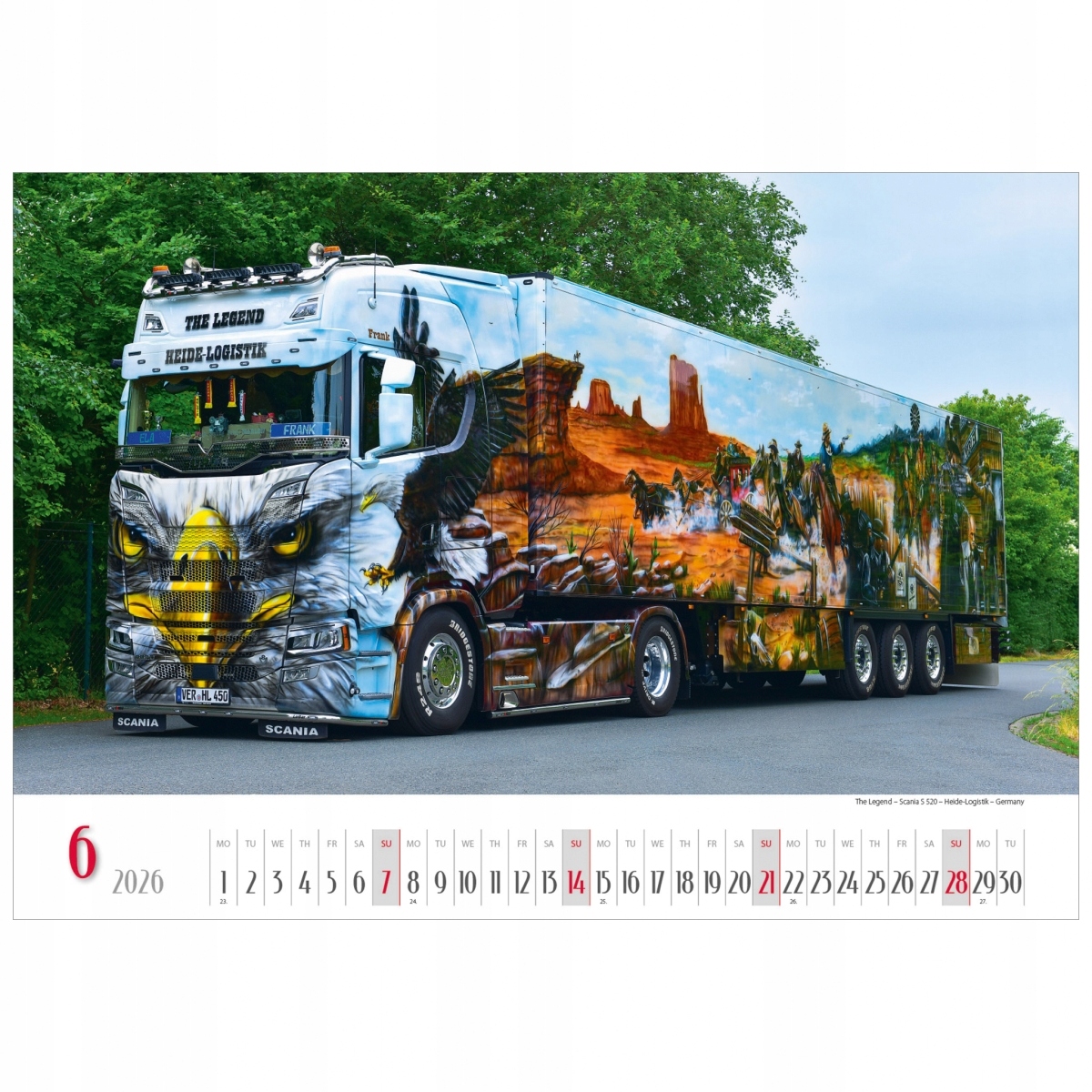 Удивительные художественные изображения на кузовах мощных грузовиков привлекают внимание – каждый из автомобилей в AMERICAN TRUCKS 2026 – настоящее произведение искусства. В календаре мы любуемся самыми узнаваемыми в мире Scanias, Mercedes и Volvo, нарисованными аэрографом и тюнингованными. Их фотографии после конца 2026 года можно с успехом использовать в качестве плакатов.