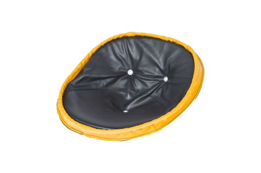 Имеет закатанный край, позволяющий прикрепить подушку к сидению