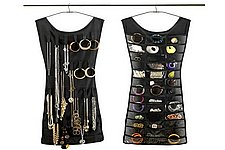 Он имеет целых 18 вешалок на липучке с одной стороны и 32 прозрачных кармана с другой, которые вмещает много любимых украшений.