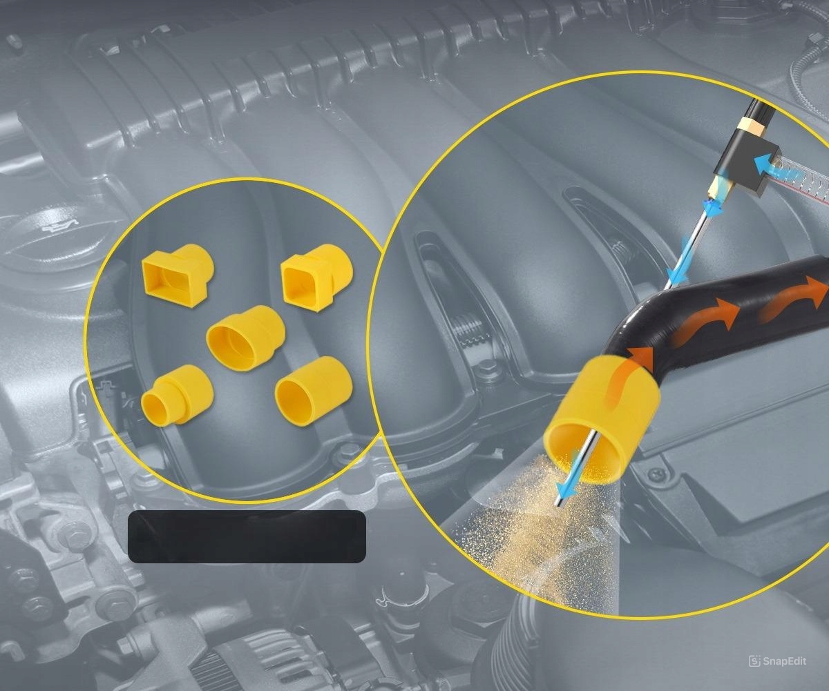 Autool HTS558 использует внешний источник воздуха, так что зерна с гайком песчаного оборудования достигают углеродных отложений с большей мощностью и эффективностью. Благодаря этому процесс очистки более эффективен, что обеспечивает улучшение состояния двигателя.