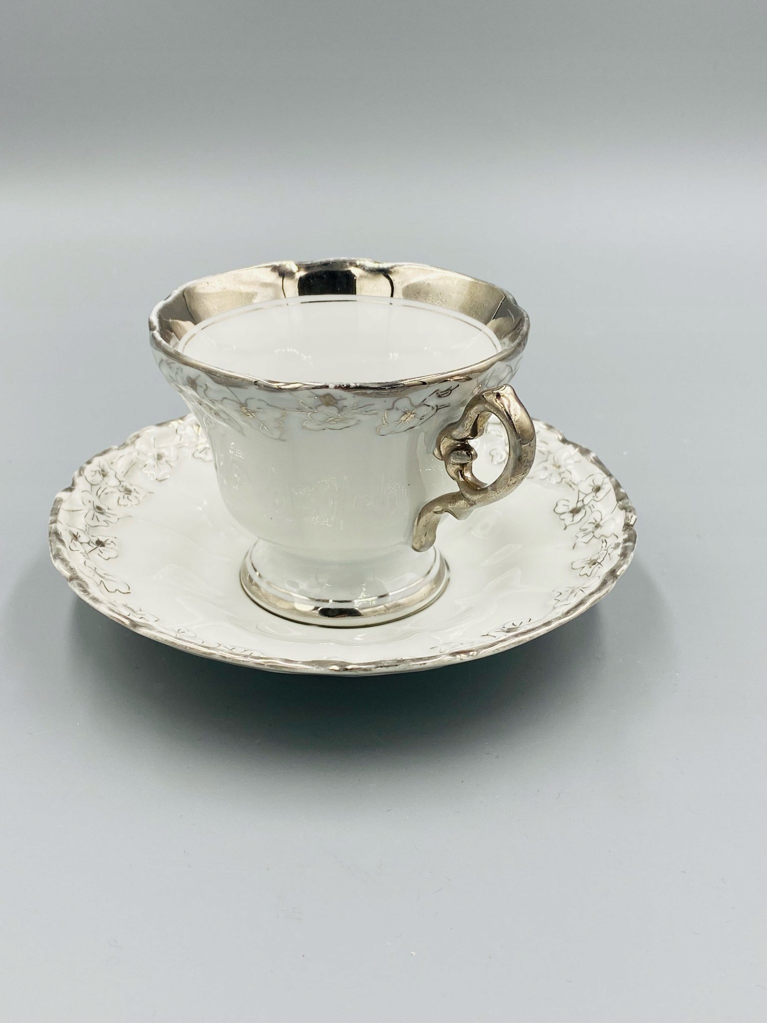 Большой дуэт C.T. Для коллекции. Орел с скипетром. Из производства Карла Тильша из Altwasser (Stary Zdroj) используется с 1875 года. Зеленый используется с 1909 года. Подписи, видимые на последней фотографии. Декоративные, растительные тиснения. Ручная серебряная края и ручка. Фотографии. Диаметр 9 см