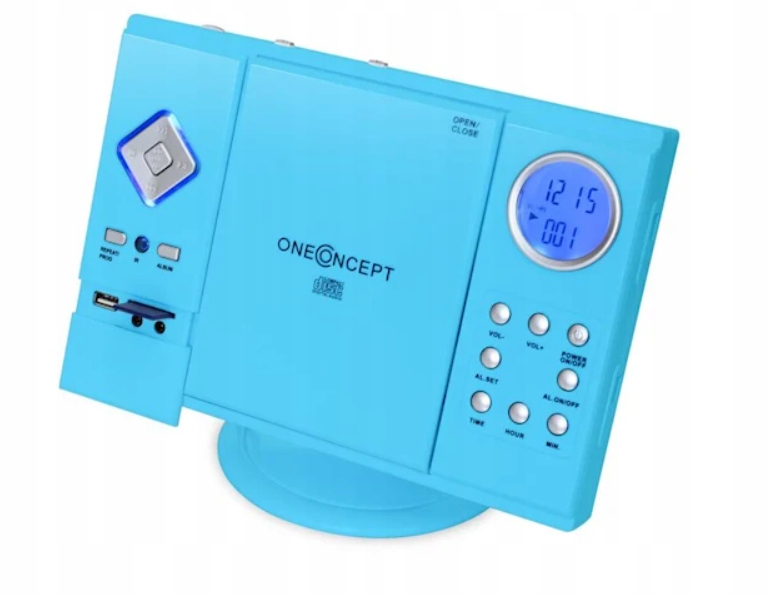 В центре мини -башни есть CD -плеер с вертикальным расположением, который также может читать файлы MP3. Кроме того, OneConcept имеет интегрированный радиоприемник VHF/MW