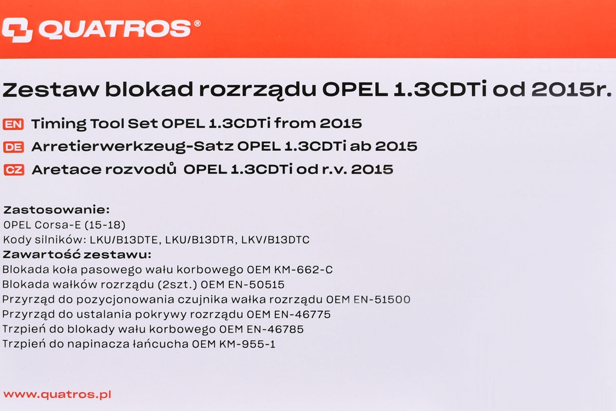 Замок времени Opel 1.3cdti с 2015 h1> набор блокировки распределительного вала h1> Quatros h2>