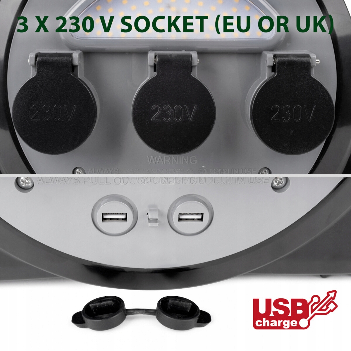 - Три розетки Schuko и два USB -порта предлагают удобные варианты зарядки для многих устройств