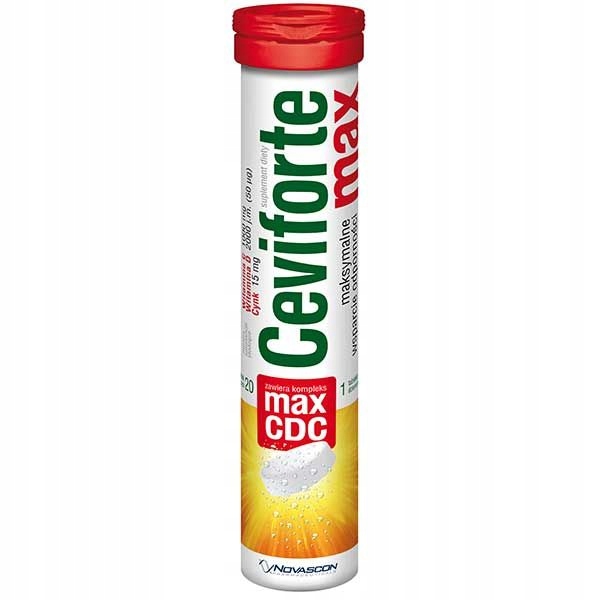 cevorde max в виде игристых таблеток-это пищевая добавка, содержащая витамин С в виде L-аскорбиновой кислоты. Кроме того, продукт был обогащен витамином D и цинком. Кроме того, витамин С способствует поддержанию надлежащего энергетического метаболизма и снижению чувства усталости и усталости. Кроме того, витамин С и олово помогают защите клеток от окислительного стресса. Он имеет приятный и освежающий лимонный вкус Вода