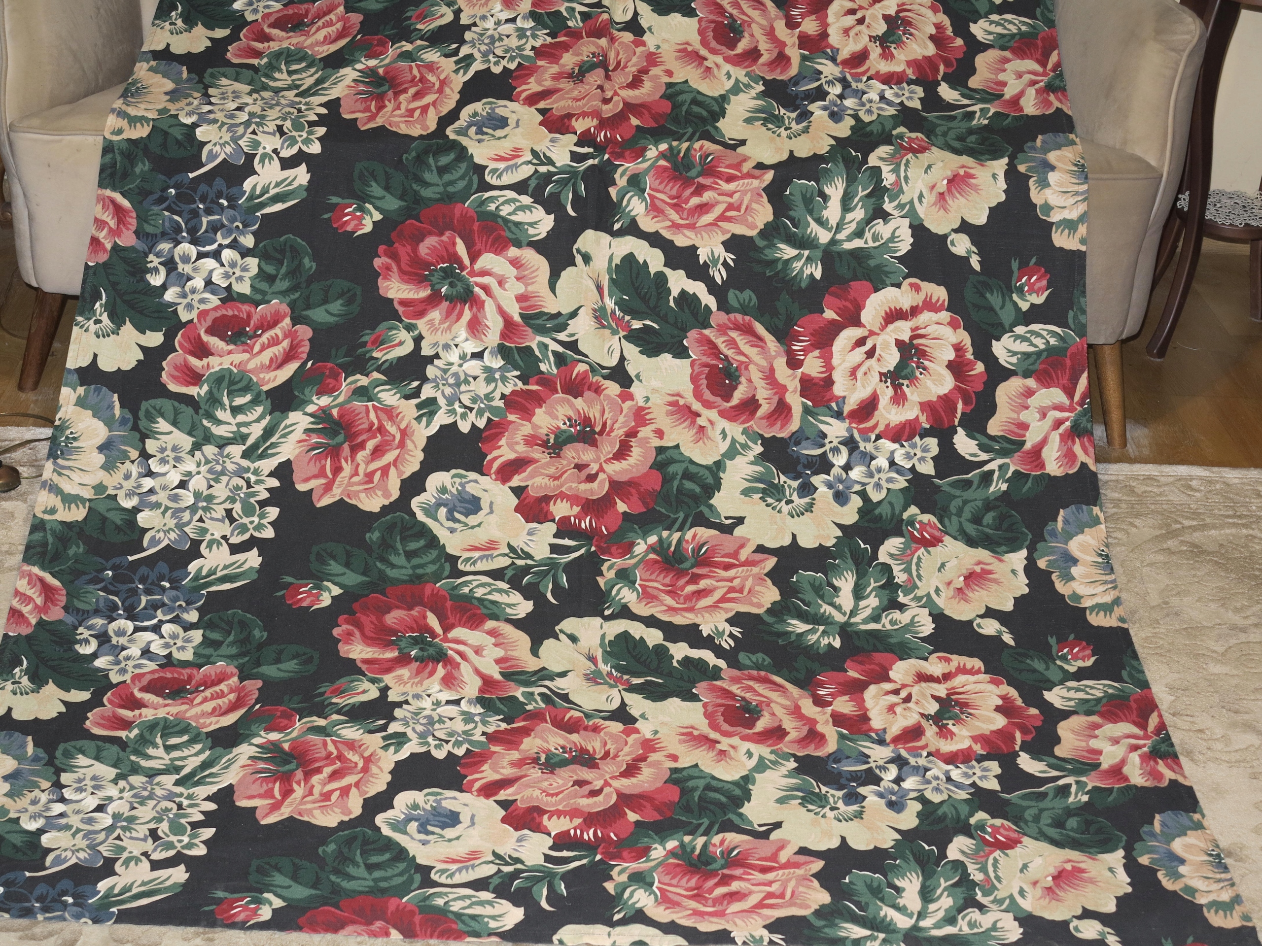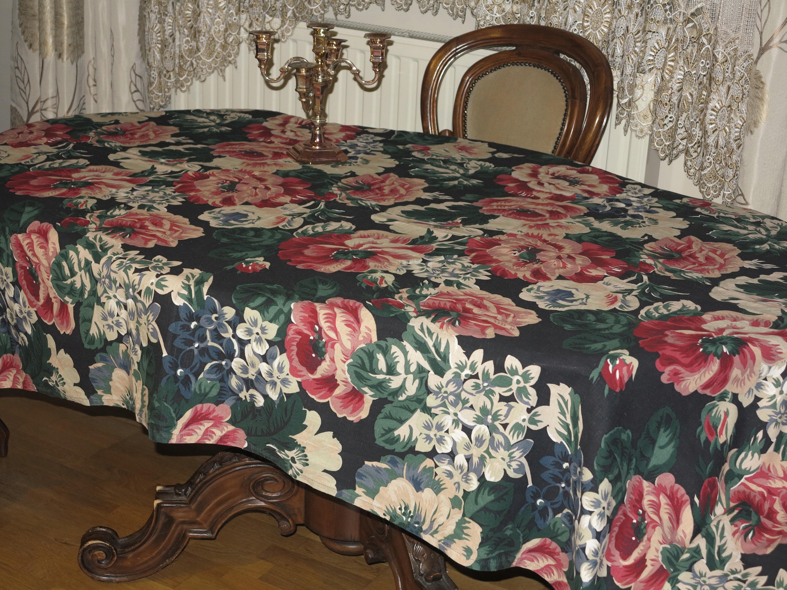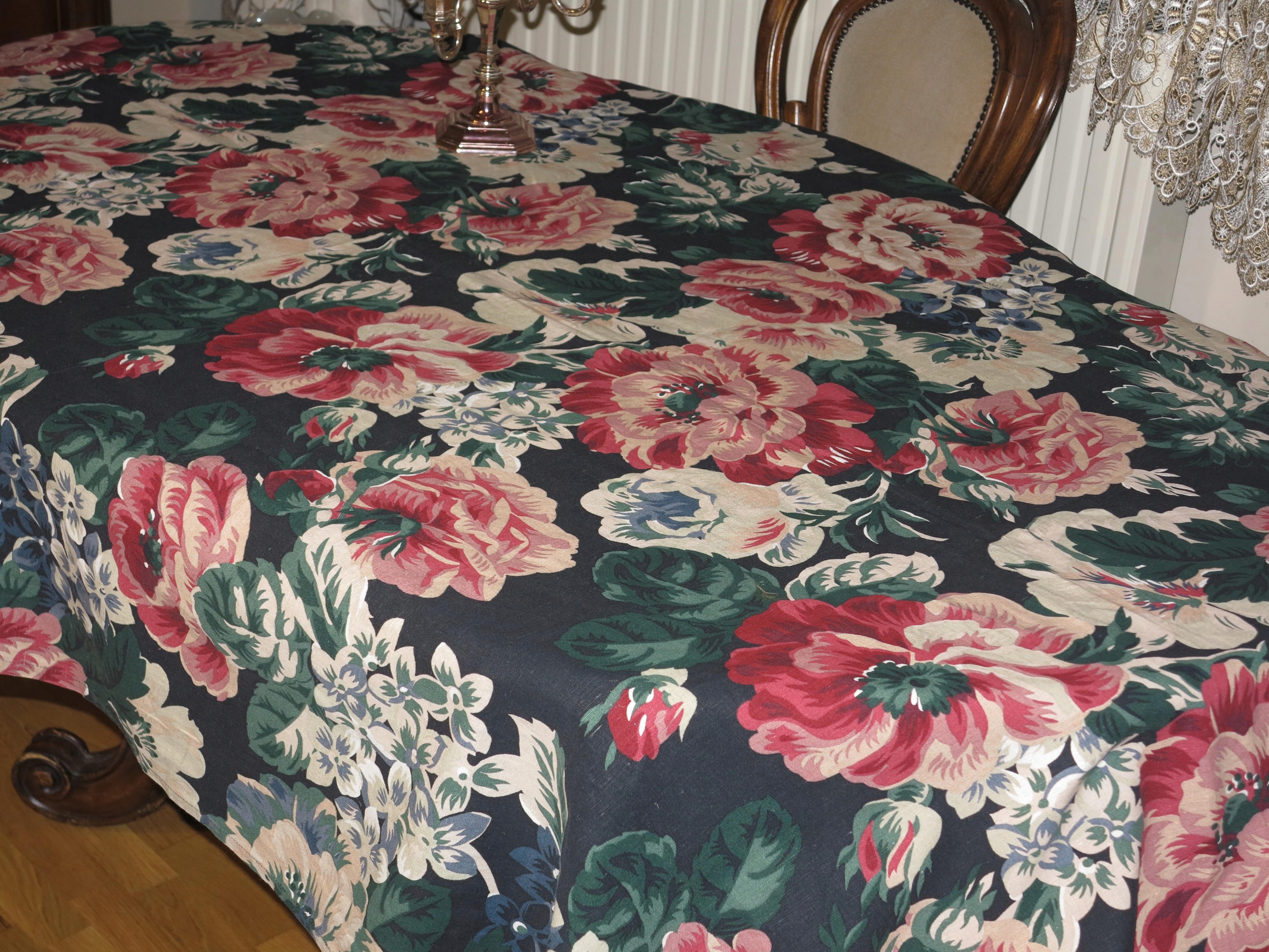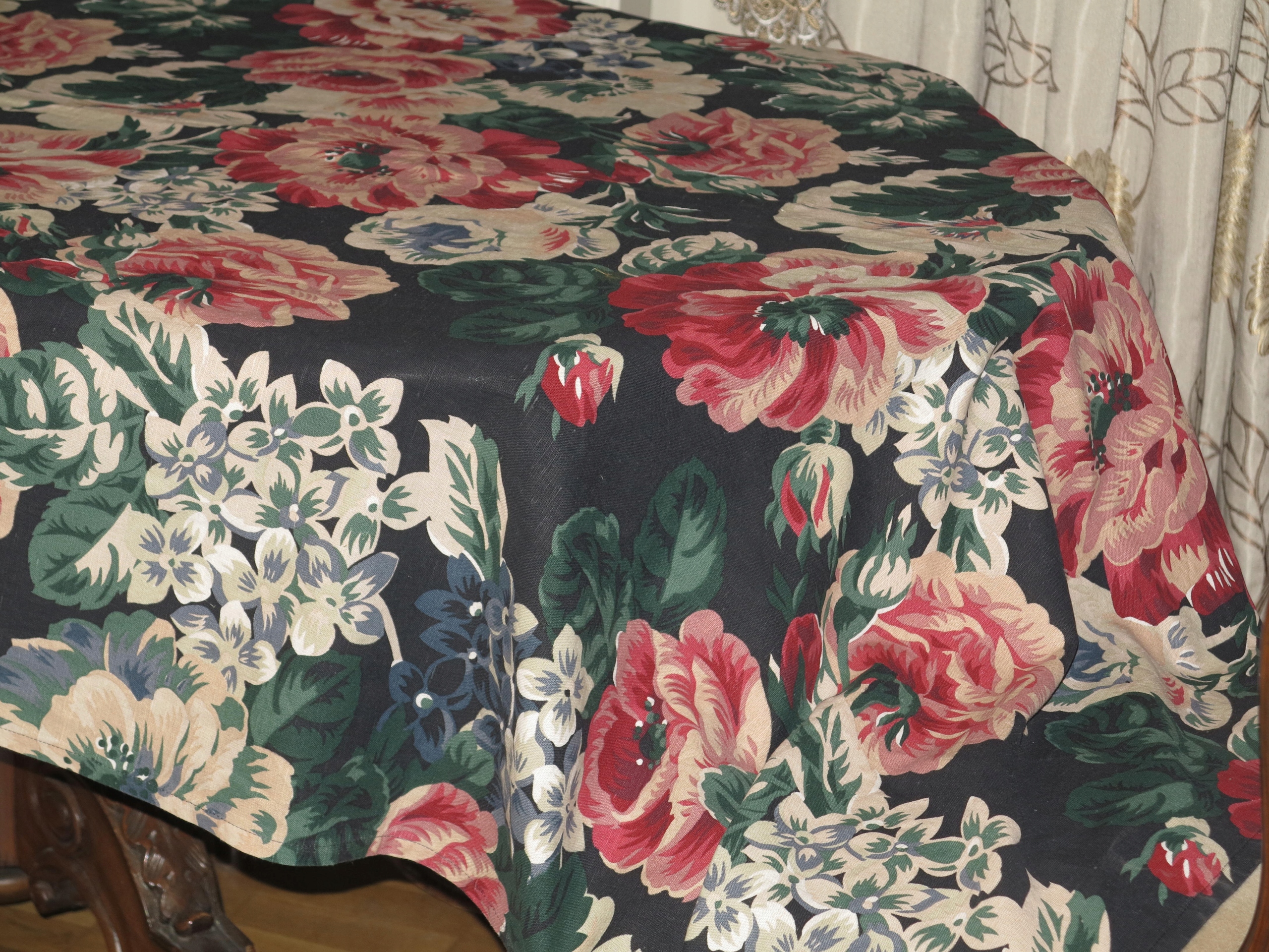 Очаровательная хлопковая скатерть с большими пионами и гортенями 100% хлопка 253/142