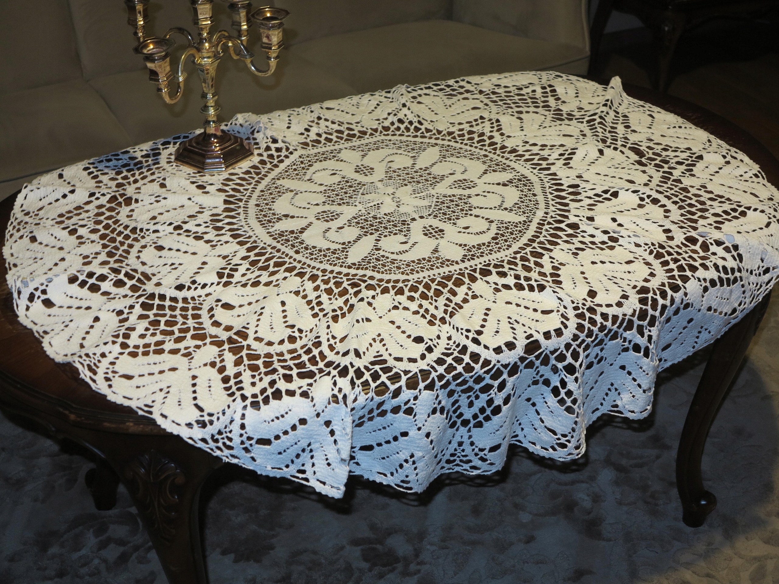 Предмет аукциона - красивая белая скатерть из хлопкового коклюшного кружева. . Красиво смотрится на столе. Его размеры: диаметр: 110см. Скатерть б/у, но в очень хорошем состоянии и качестве. Рекомендую