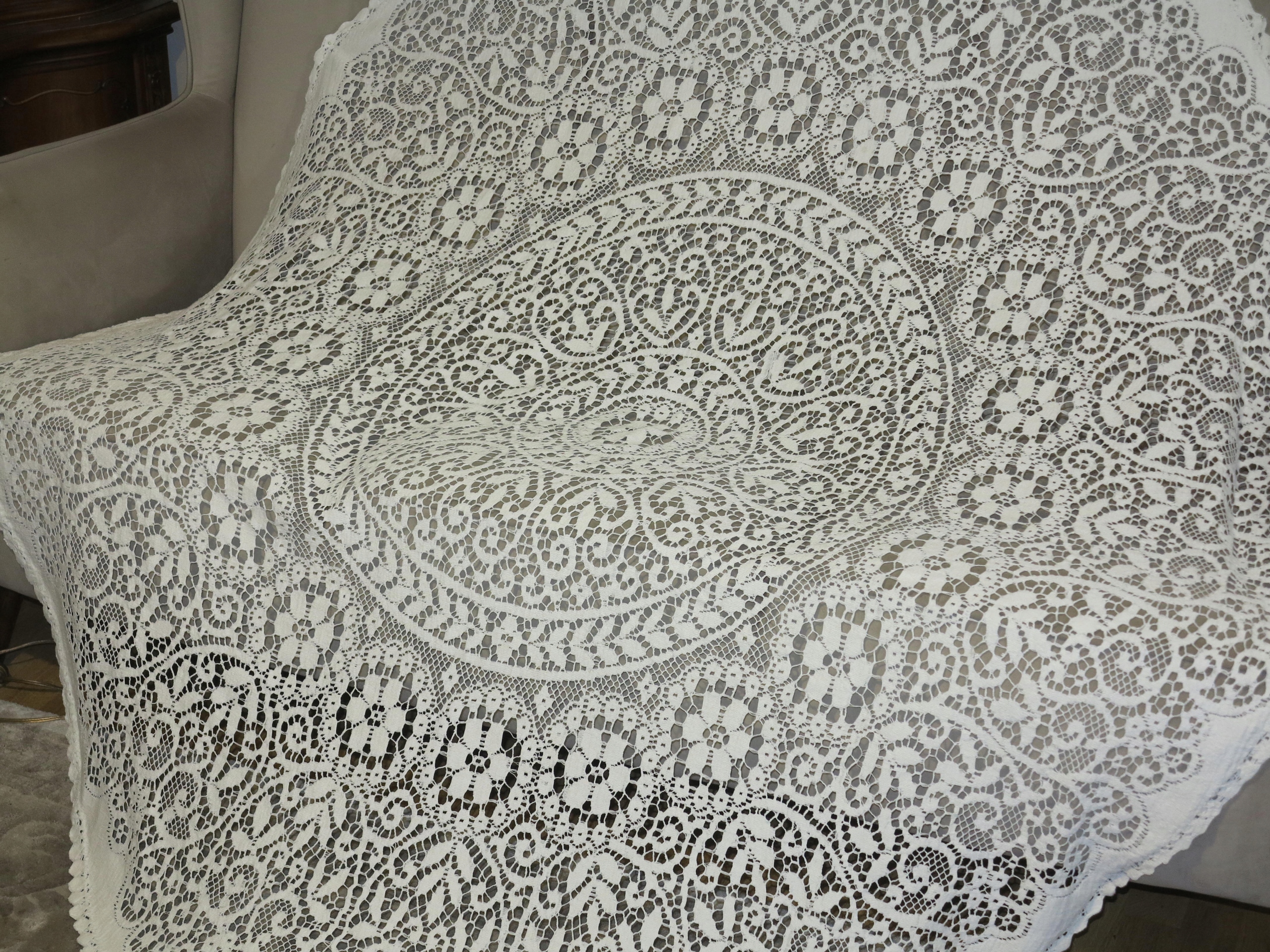 Предметом аукциона является исключительно красивая английская скатерть из хлопкового кружева машинной работы с антикварным узором. Красиво смотрится на столе. Имеет размеры: 190/167см. Скатерть б/у, но в очень хорошем состоянии и качестве. Рекомендую