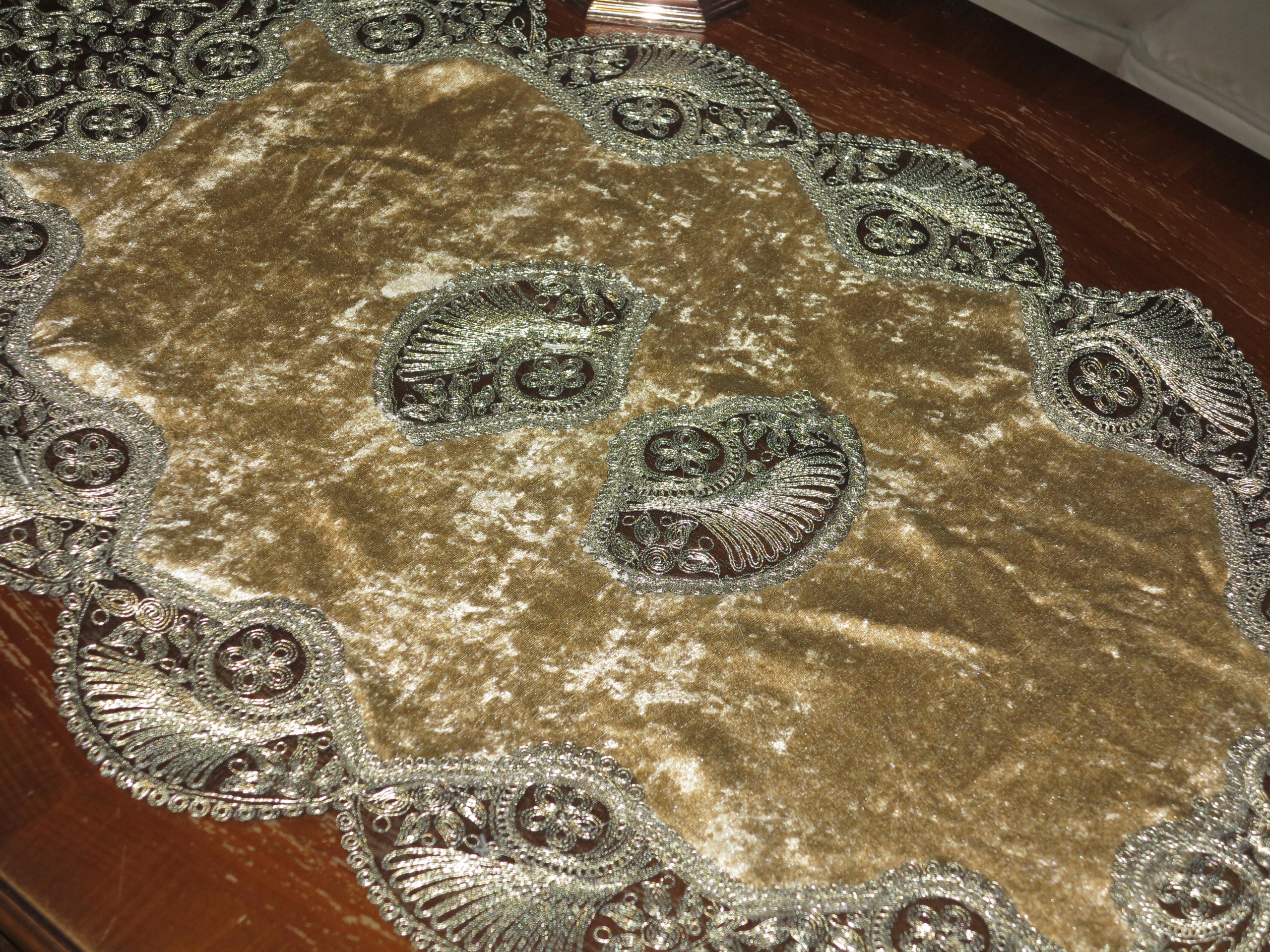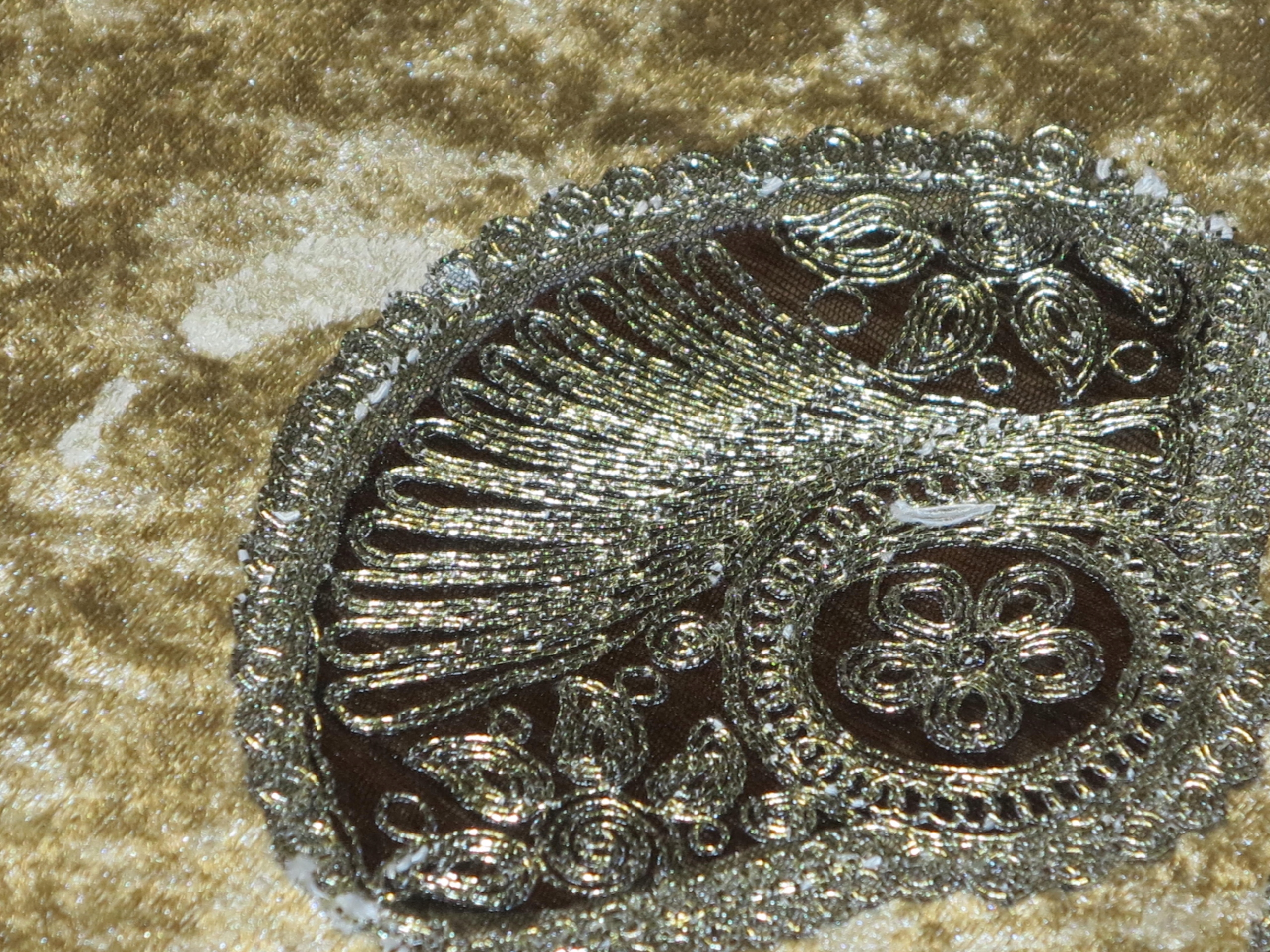 Чрезвычайно очаровательный золотой протектор- бархатистый лауфер с сложной машиной вышивки из металлических потоков.