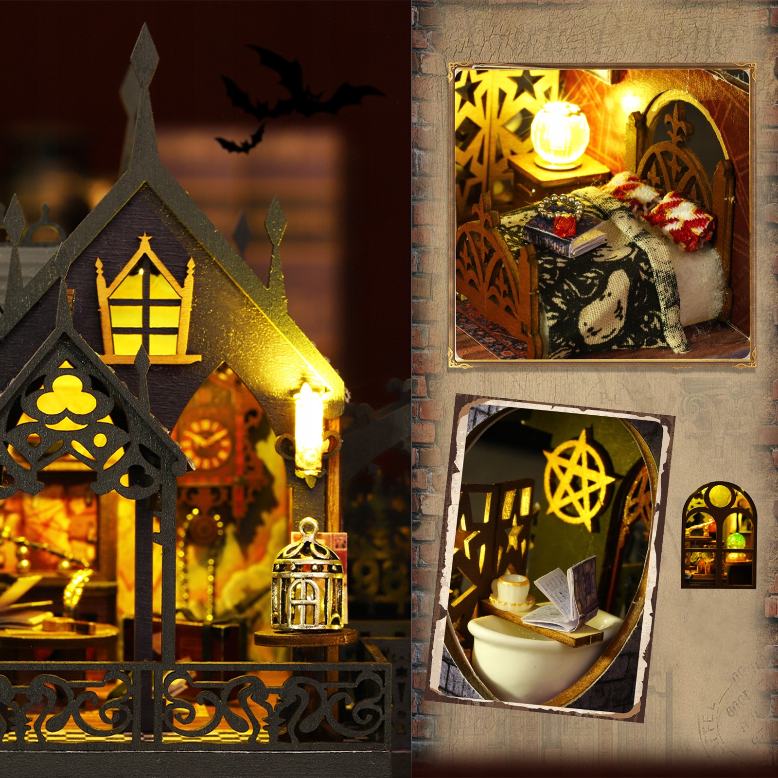 🧙♀️🧙♂️🏰【Высококачественные материалы и музыка】 Этот миниатюрный набор для самостоятельного изготовления дома включает в себя различные материалы, такие как: музыкальная шкатулка, светодиодная подсветка, бумага, дерево, металл, пластик, пылезащитный чехол, что позволяет создавать разнообразную мебель и украшения; все материалы экологически безопасны, без заусенцев; вы можете использовать их без каких-либо опасений. (Батарейка и клей не входят в комплект, поскольку их нельзя транспортировать по воздуху.)