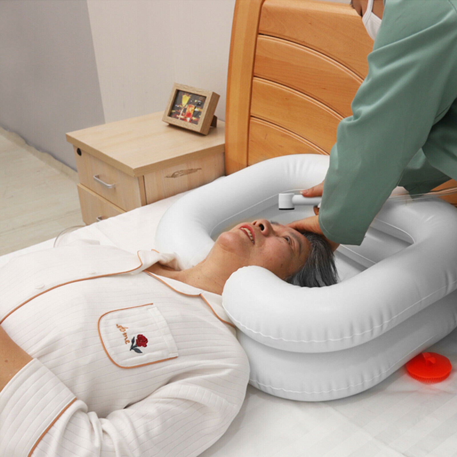 ➤ 【Комфортно и простой в использовании】 : удобная подушка безопасности помещается под головой человека, прикованного к постели. Голова, шея и плечи хорошо поддерживаются при мытье волос, что обеспечивает максимальный комфорт и расслабление. Плавные трубки производятся точно, чтобы предотвратить ссадины и зуд вокруг шеи.