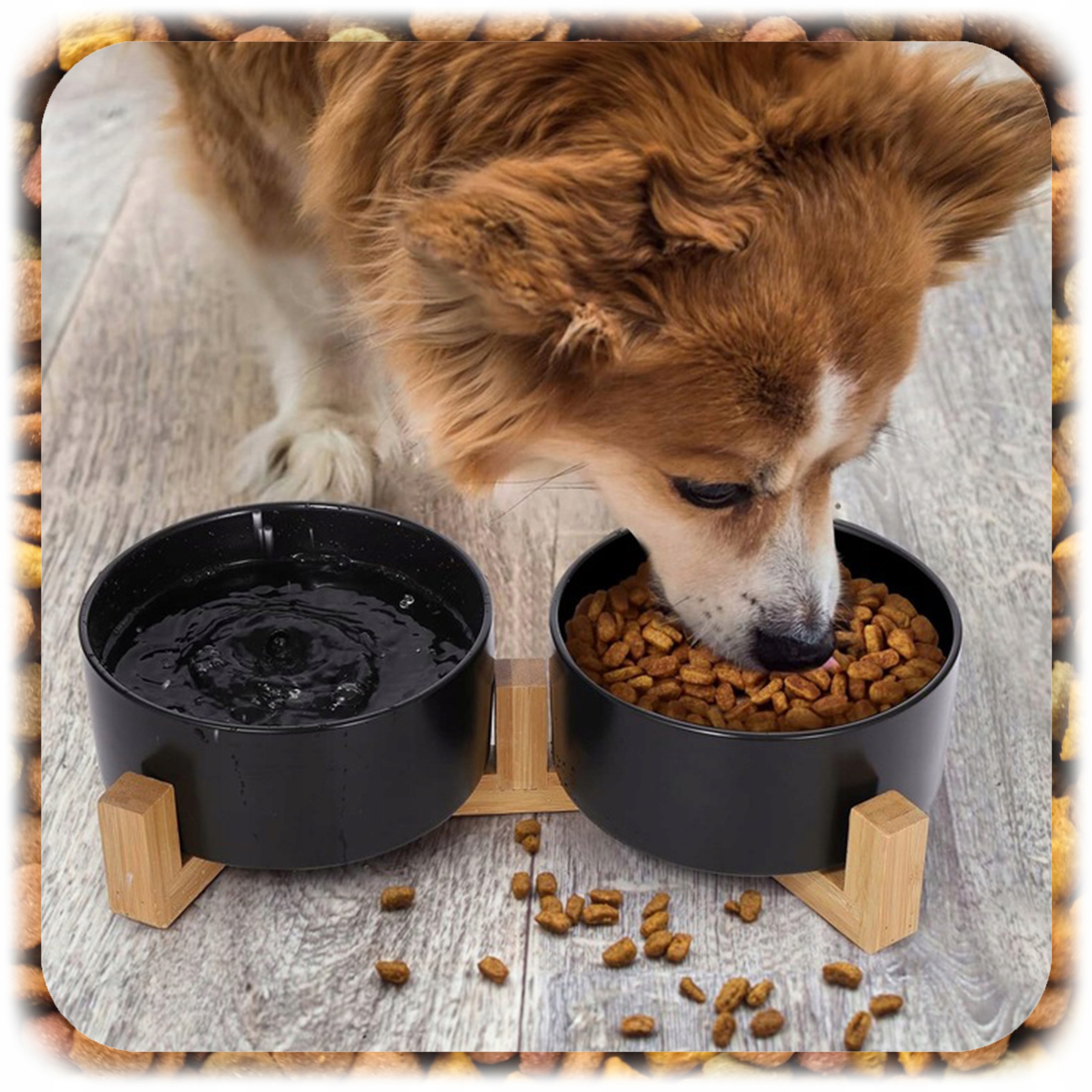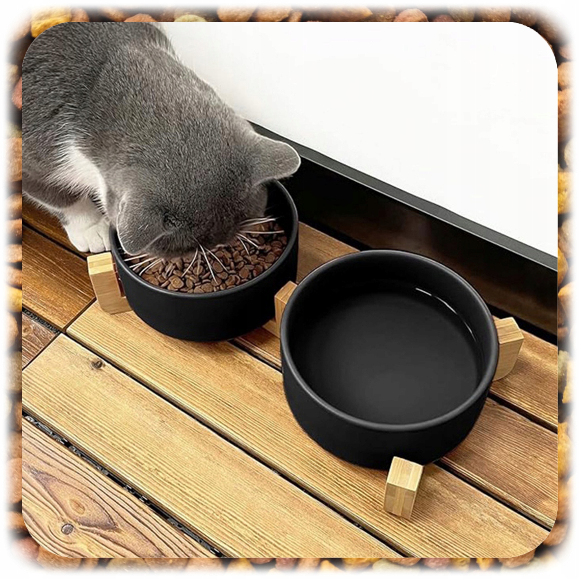 Ставка на практическое решение в элегантном издании - выберите двойную керамическую миску на деревянной подставке сегодня!