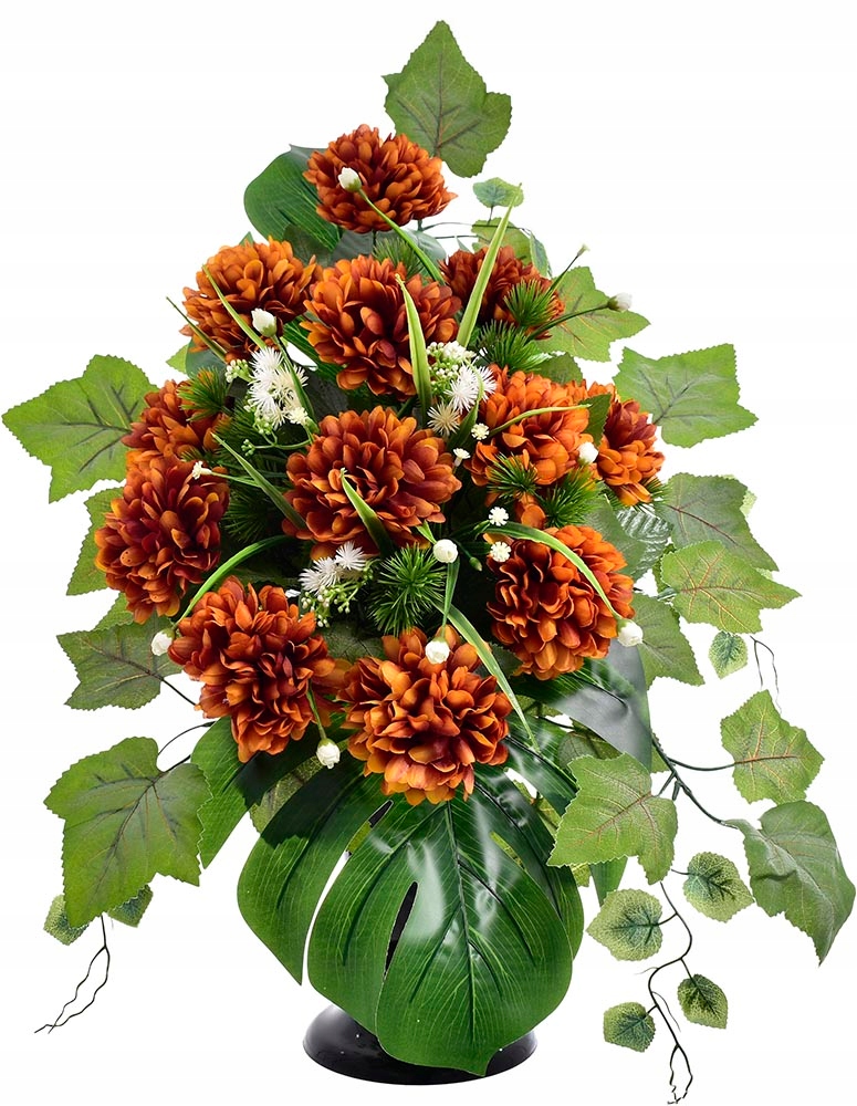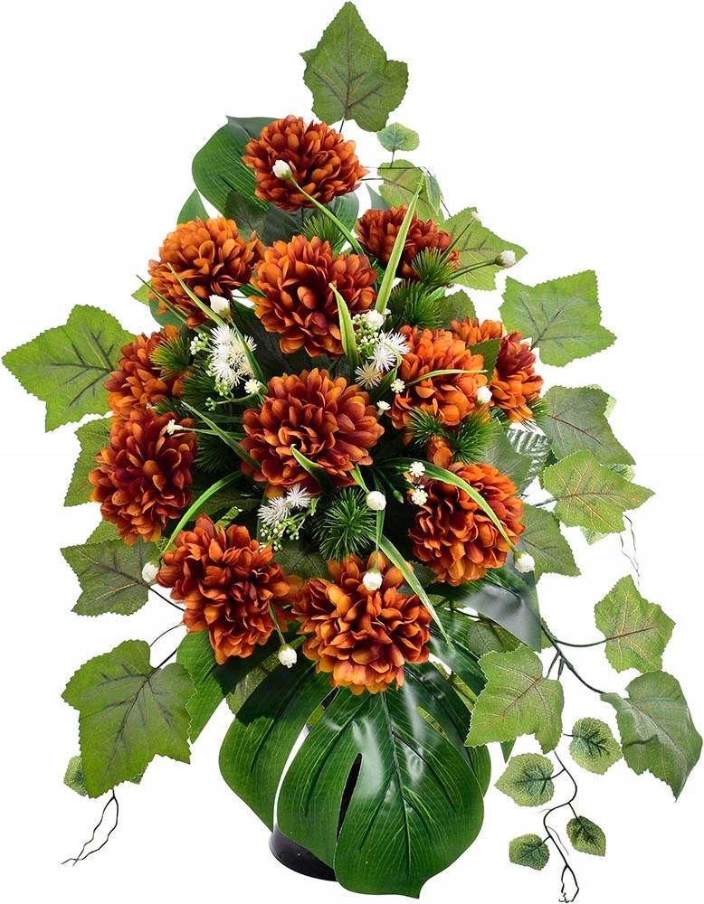 ✅ Украшение состоит из чудесных цветов хризантем и множества белых и зеленых аксессуаров.