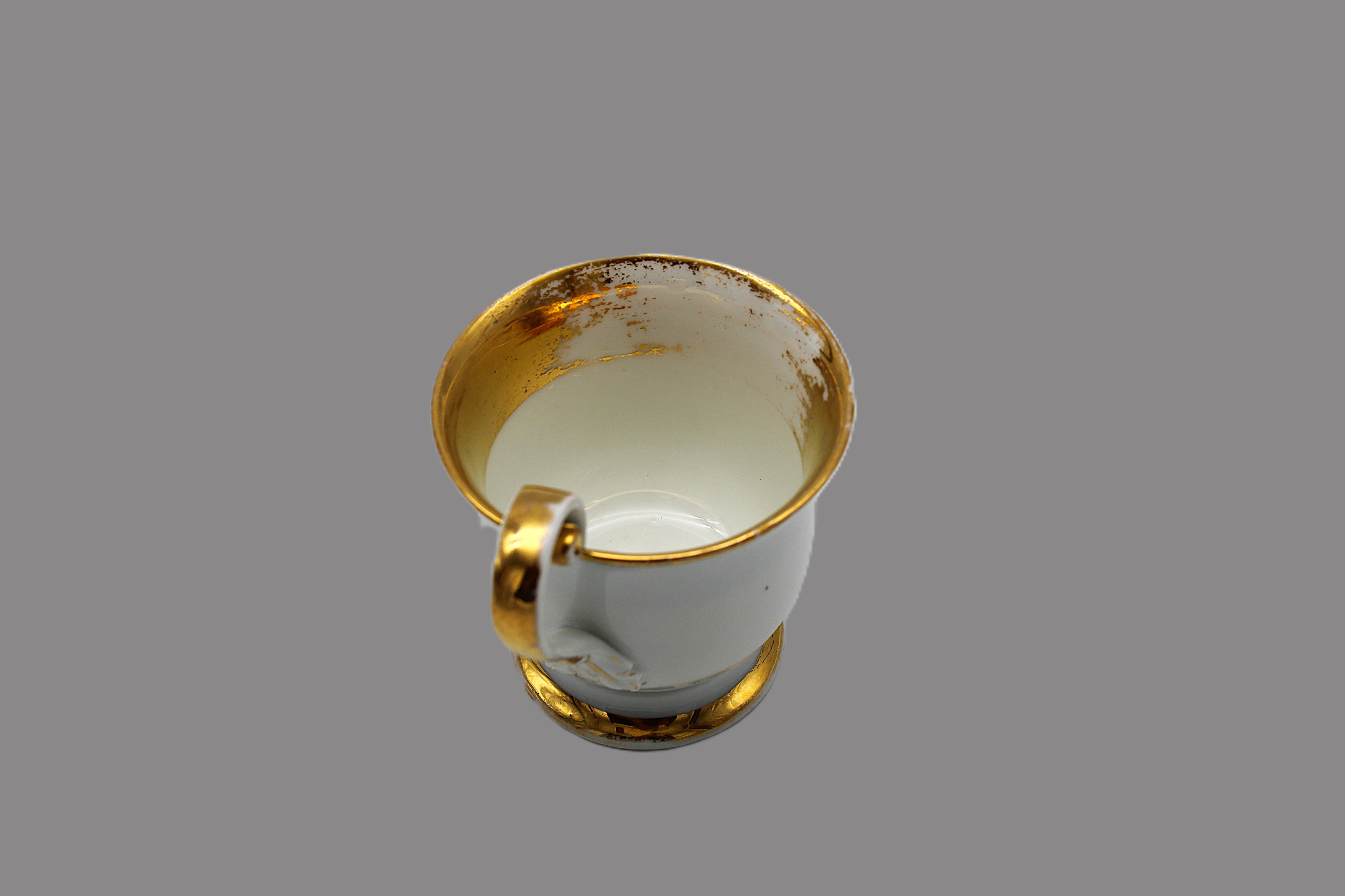 Я рекомендую старую антикварную чашку кофе - смесь фарфорового чая - Саксония, сделанная в первой половине девятнадцатого - 19 -го ** состояния, например, на очень хорошем Скане, имеет только естественные ссадины в золотистости. Чашка происходит от периода, когда небольшие недостатки фабрики не были приняты во внимание