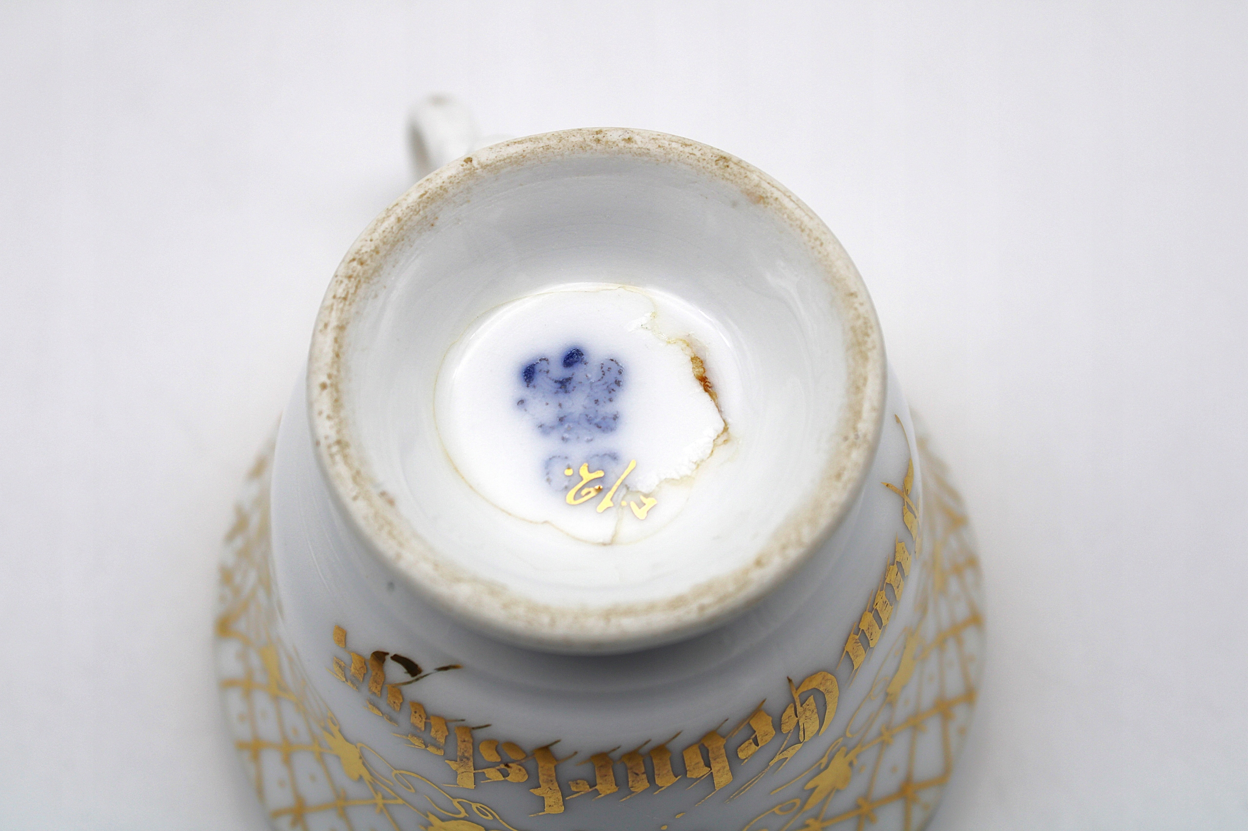 Я рекомендую старую древнюю чашку кофе - чай с фарфоровой фабрики Карла Тильша в альтвассере - Стари -Здр Стэри Силезии, сделанная между 1870-1900 годами, все, что на руке, такое как на сканировании для своих 150 лет, имеет естественные временные абермы, а на код и коно Фото