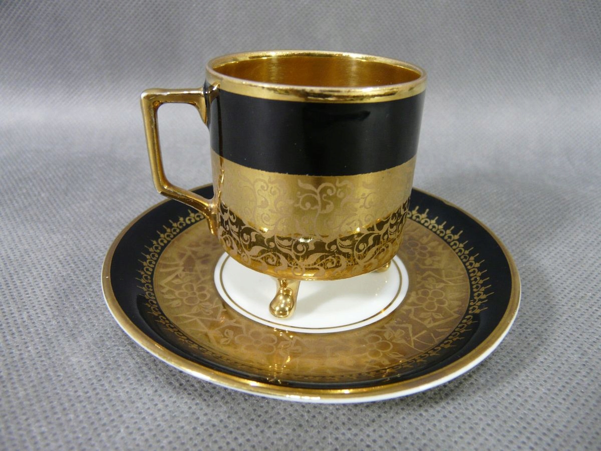 Белого цвета с богатым позолотой. На задней стороне блюдца есть загрязнения, возникшие в процессе производства.