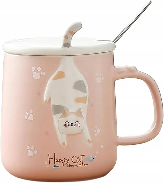 Фантастическая керамическая кружка с крышкой и чайной ложкой - кружка для кошек и красивый кошачий хвост