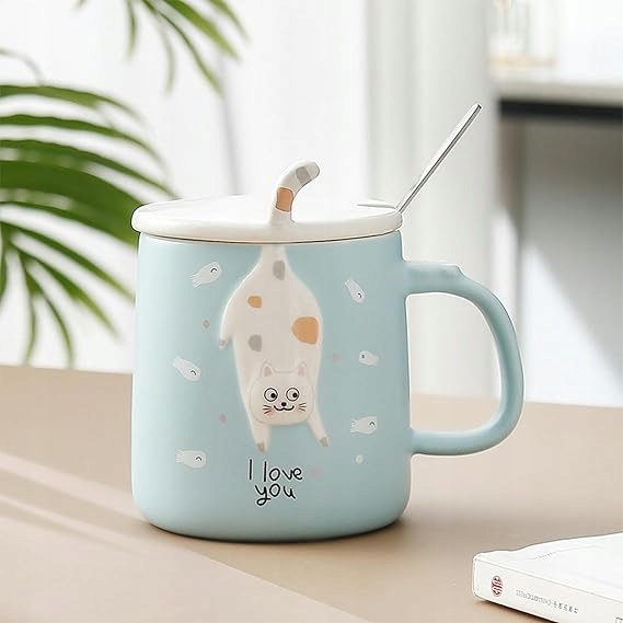 Чашка с кошачьим хвостом с керамическим подарком крышки Big Beautiful