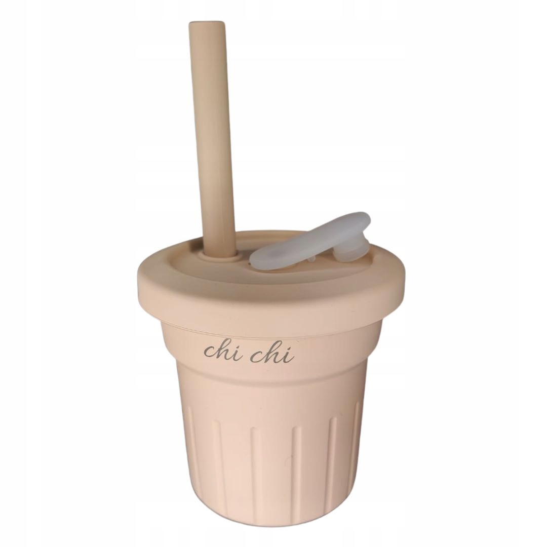 Силиконовые чашки ChiChi с соломкой, цвет бежевый