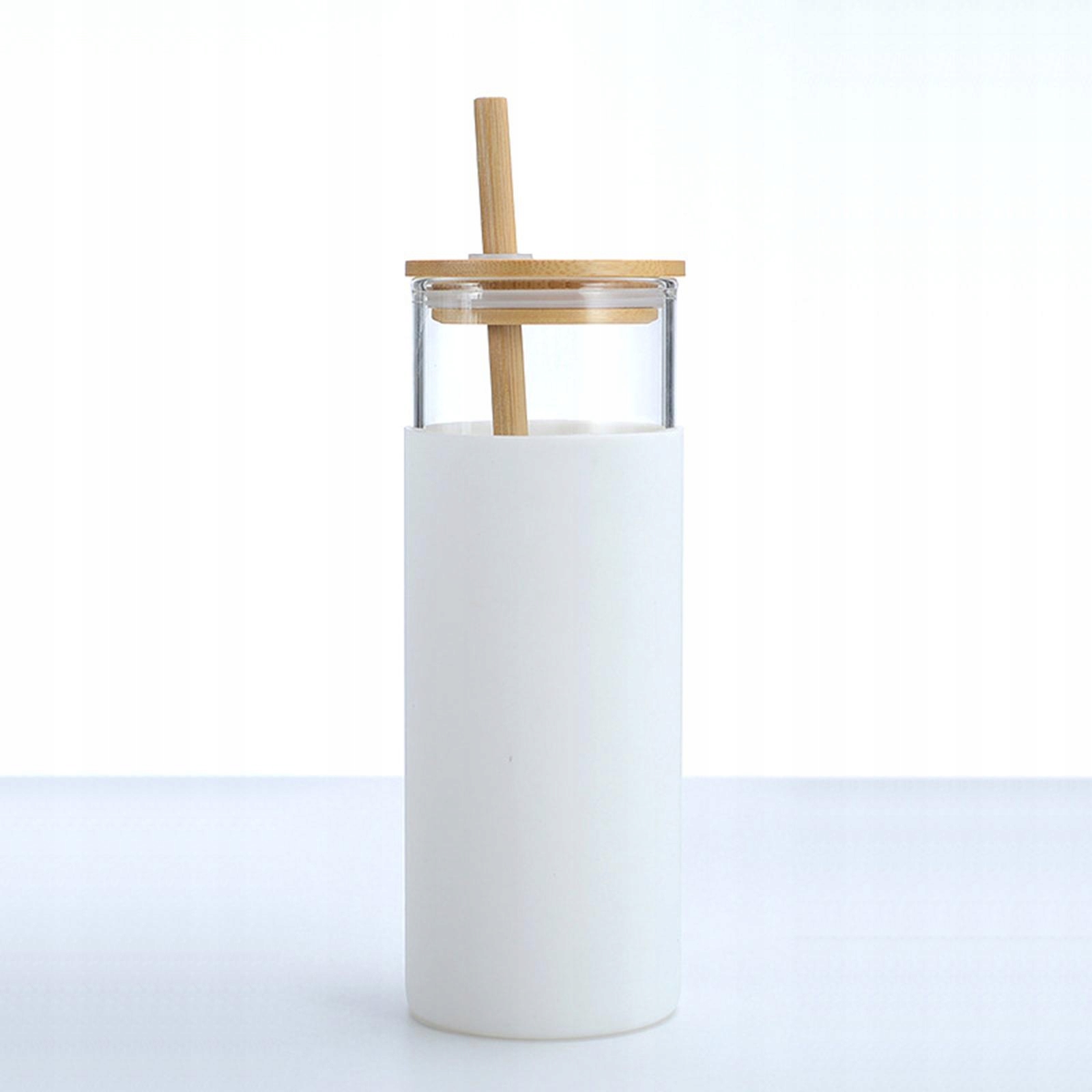 Чашка зі скляною бамбуковою кришкою та стаканом для соломи для кухні Iced White