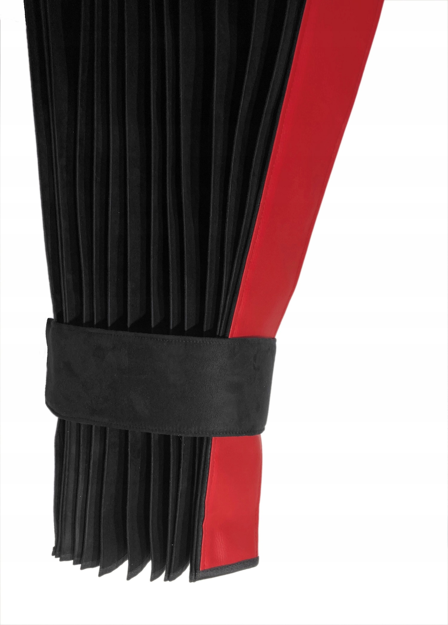 ПЕРЕДНЯЯ ЧАСТЬ ШТОР - КРОМОК ОТДЕЛЕН КОЖАНЫМ МАТЕРИАЛОМ, КОТОРЫЙ ПРИДЕРЖИВАЕТ ВСЮ КОНСТРУКЦИЮ И ОБЛЕГЧАЕТ СКЛАДЫВАНИЕ В НОЧЬ