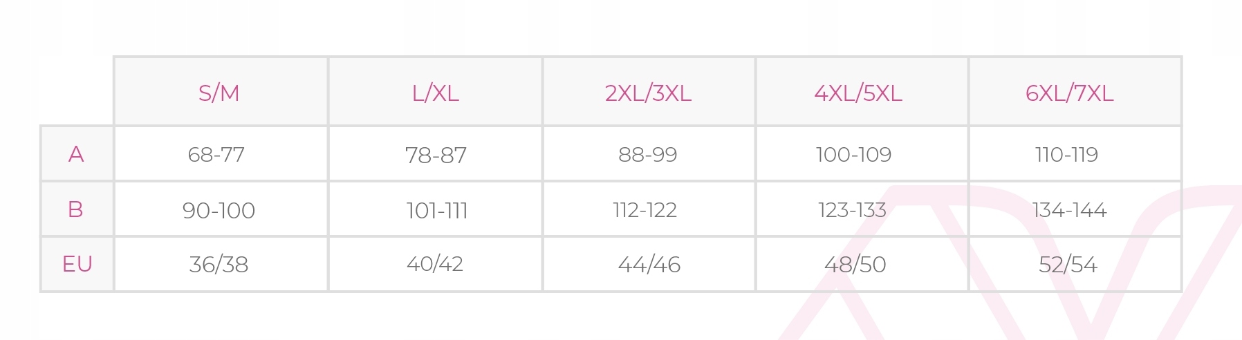 Таблица размеров: A: Талия B: Бедра ЕС: Размер ЕС