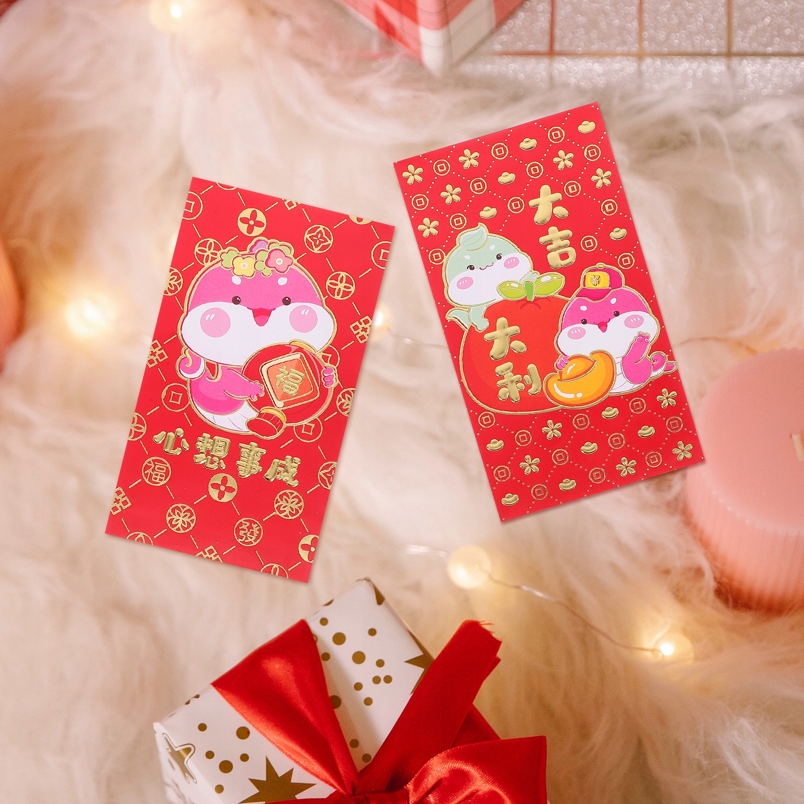✅ Универсальный дизайн: мультипликационный знак зодиака змеи, красные конверты являются очаровательными и интересными p>