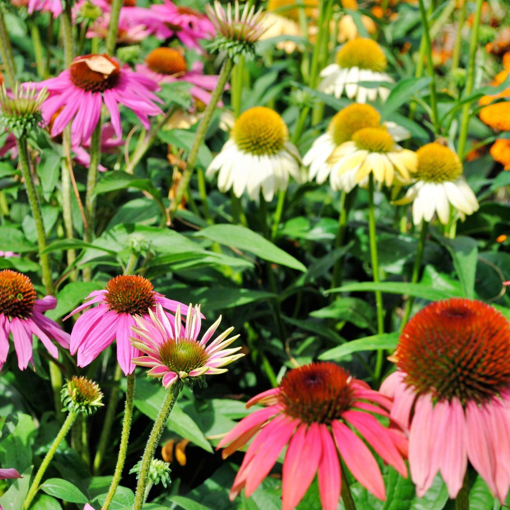Purple Echinula Cheyenne Spirit -это эффективное, многопорочное разнообразие, которое впечатляет цветами в оттенках красного, оранжевого, желтого, розового и белого. Он устойчив к засухе, легко выращивать и идеально привлекает бабочек и пчел, что делает его идеальным выбором для натуралистических садов и многолетней скидки. Растение обычно вырастает до высоты 60-80 см, создавая жесткие, хорошо разгражденные побеги и компактные комки. Цветы появляются в изобилии с июня по сентябрь, а иногда даже дольше, если погодные условия благоприятны. Каждый цветок имеет характерный, выпуклый центр в оттенках коричневого или оранжевого, который окружает ланцетные хлопья в интенсивных цветах. Их долговечность и декоративность делают их идеальными как для сада, так и для нарезанного цветка.