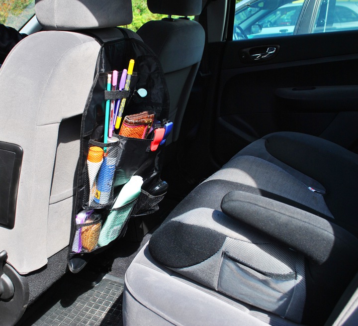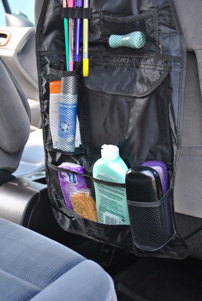 ПРАКТИЧЕСКИЙ ОРГАНАЙЗЕР АВТОМОБИЛЬНОГО СИДЕНЬЯ - устанавливается на спинку переднего сиденья. В него можно положить много полезных предметов – карту, игрушки, газеты или бутылки.