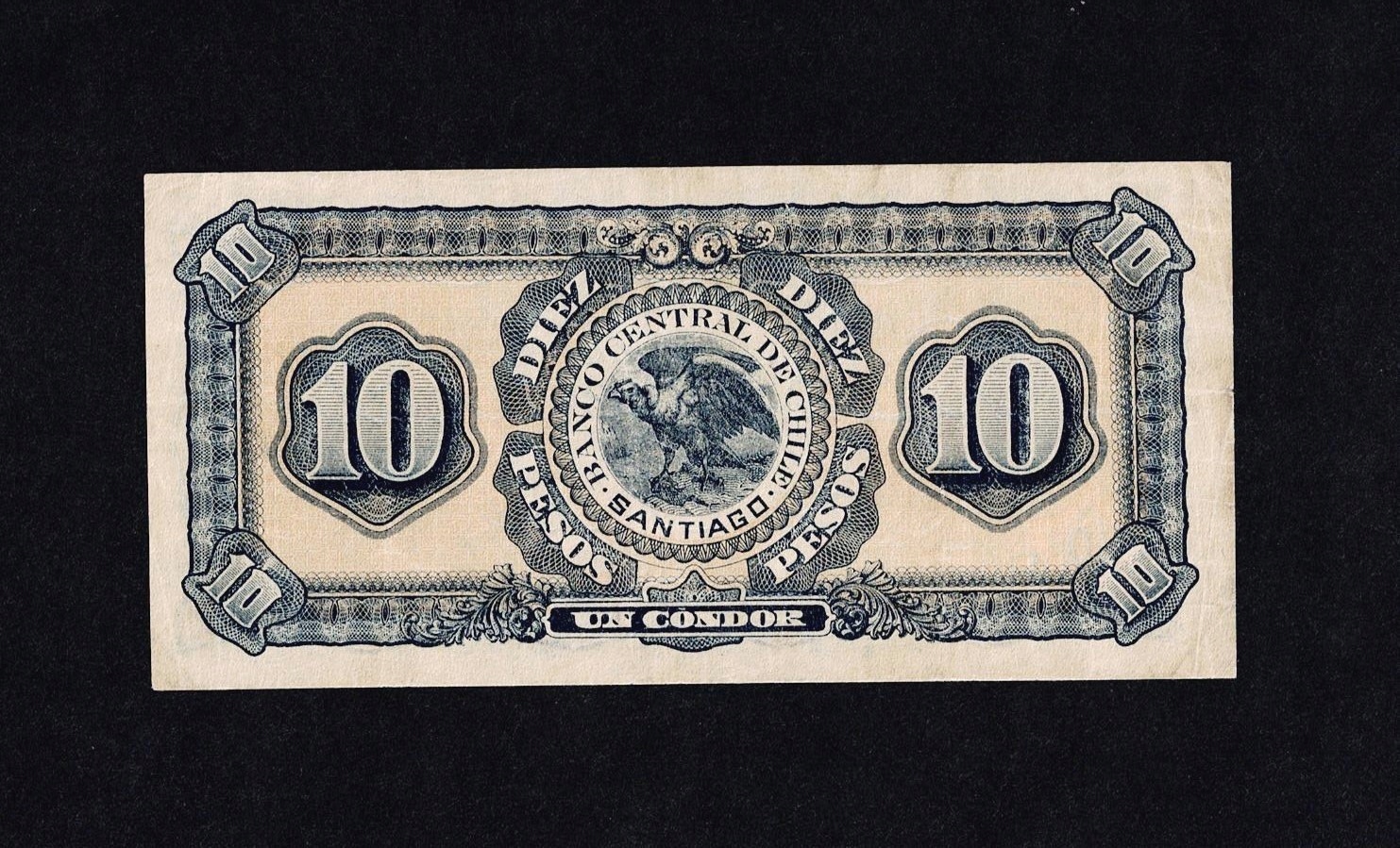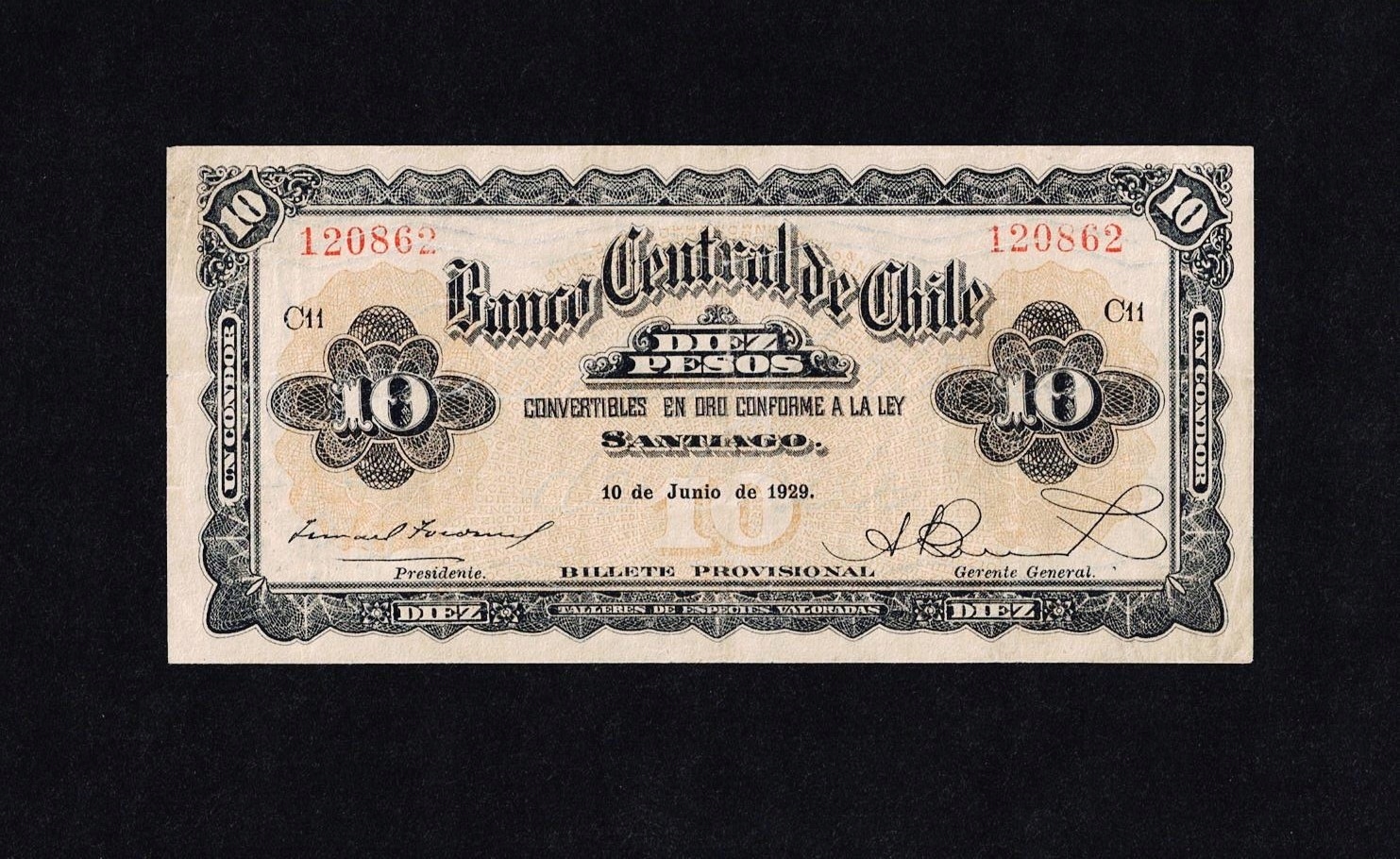 Чили 10 песо 1929 Пик# 83b VF ++ очень редко