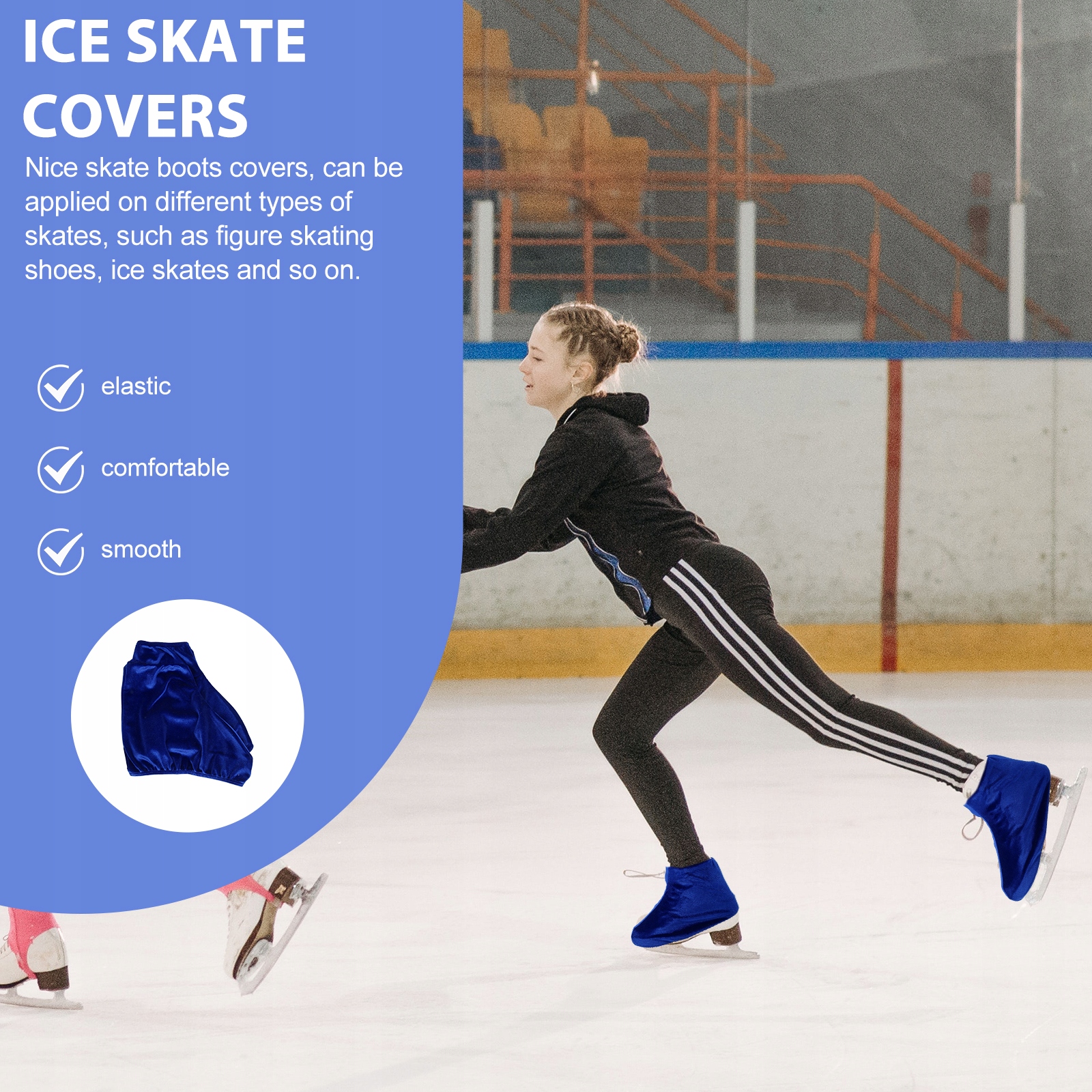 ✅Этот товар представляет собой чехол для конькобежной обуви, изготовленный из полиэстера высочайшего качества. Они удобны на ощупь, легки, компактны и практичны. Вы можете отправить эту защиту для коньков своим друзьям, и она станет им хорошим помощником.